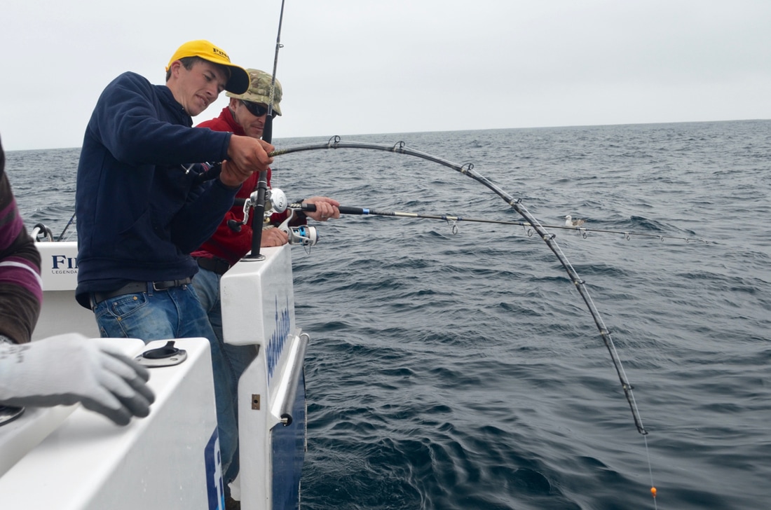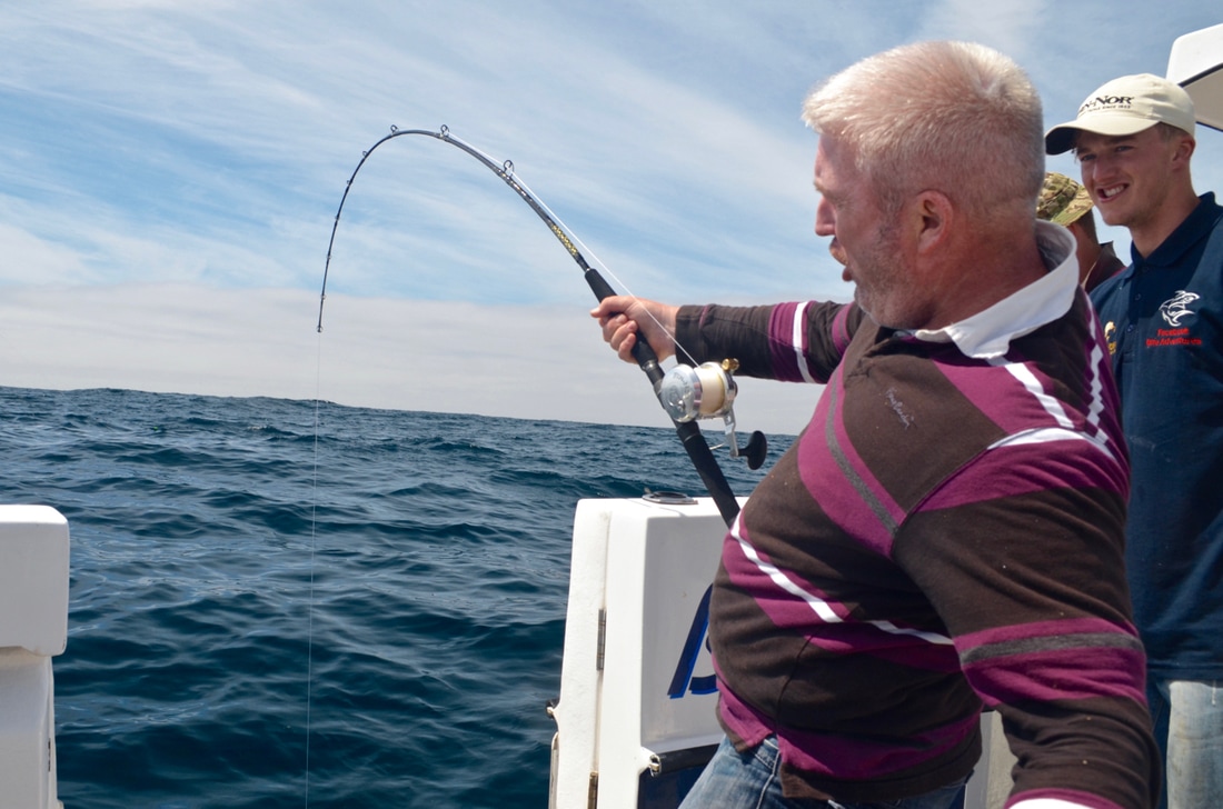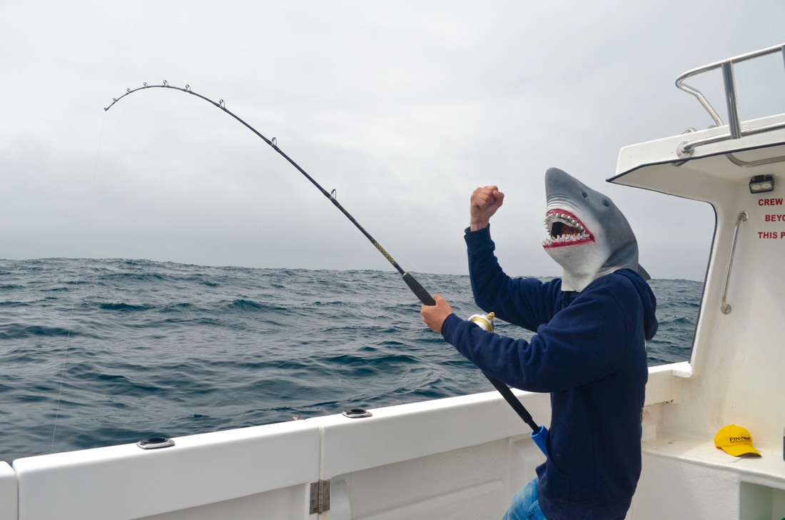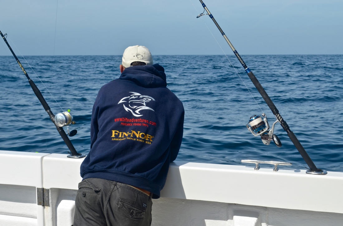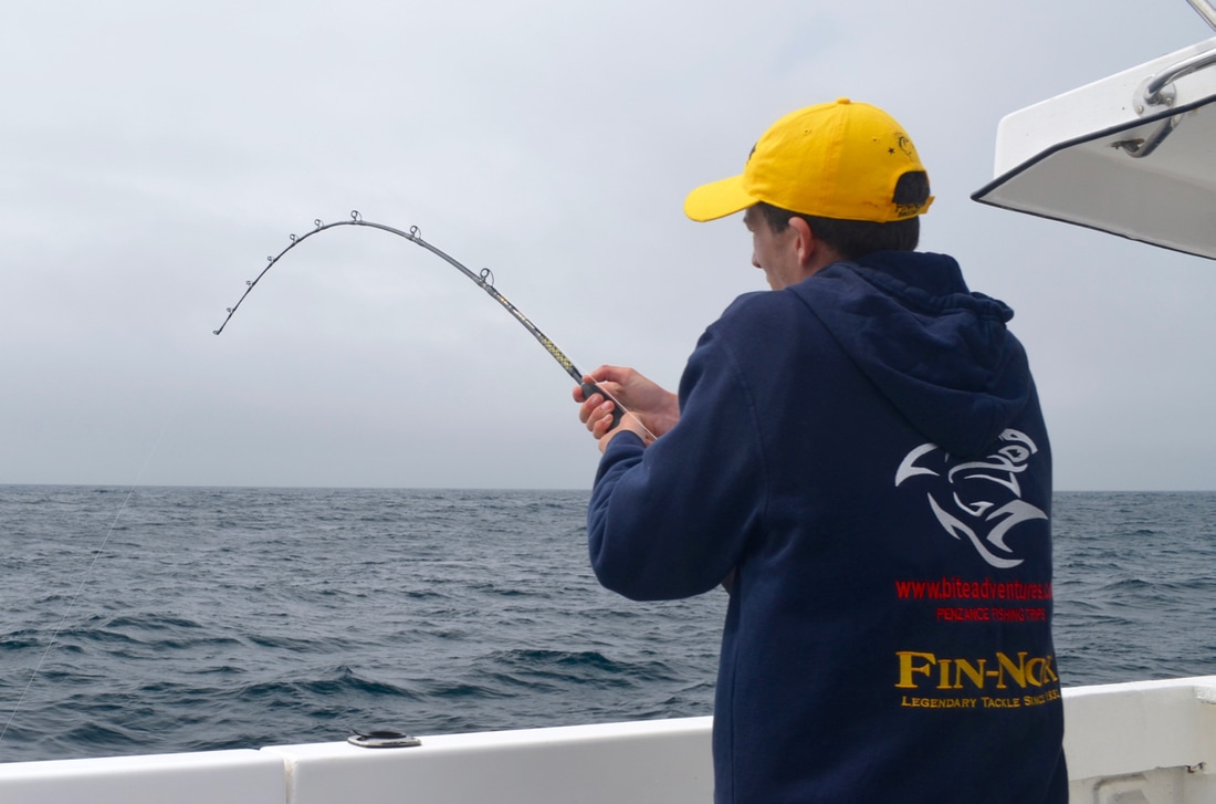 An Early StartWe would be leaving Penzance Harbour at 6:30am and it was due to be a long day on the water. We would be heading way offshore in search of the magnificent Blue Shark. This pelagic sharks live a nomadic life and travel huge distances across across the ocean in search of food, mainly baitfish such as Mackerel and Herring as well as Squid. The sea temperatures around Cornwall were just about warm enough for them to turn up here and Bite Adventures would be heading out to see if they had arrived. Bite Adventures is skipped by Robin 'Chippy' Chapman, one of the top skippers this country has to offer and certainly has an impressive catch record to boast. His boat Bite Adventures has seen some huge fish over the years and the waters of West Cornwall offers some of the finest fishing in the country, the type of fishing you will drool at! A top bloke too and what he doesn't know about fishing isn't really worth knowing. He was busy prepping the boat on arrival.... There would be a fine group of reprobates on the boat today, local angler Scott, one of Cornwall's top boat anglers Bob and the top Jam Master Kieren, also known as my brother. Ropes away and we headed off to find some fresh Mackerel for bait. Bite really shifts. She is a 9 metre North Sea Catamaran and is powered by twin 200hp four stroke Honda outboards. These really chuck out some power with an oblivion of white water off the stern. We were going places quick.... Less time travelling so more time for fishing! We soon stopped and tried for the mackerel which were proving scarce. We managed a handful in half an hour, just enough for bait. I found a Pollack too. Time to head out to the grounds! Plenty of banter later and we arrived. The Shark Fishing Grounds....Chum mashed up, rods set up, baits prepped to perfection and one by one 4 rods were set fishing at varying depths in the water column in the hope of finding a shark. It was a glorious day and everything felt just right.... The gear used on Bite is top quality stuff. The boat is sponsored by Fin-Nor - a world leader in big game fishing gear. We were using both Fin-Nor rods and reels and they are superb. Chippy hand makes his shark rigs with great attention to detail, perfected over many years of shark charter fishing. The shark fishing on Bite Adventures is strictly catch and release with every effort made to ensure the fish go back with minimal harm. The rig is terminated in a strong circle hook providing a clean jaw hook up - no deep hooking so less damage to the fish, and quicker unhooking too. Now we just needed fish! With 5 on the boat we had to fairly decide who would get first fish. Chippy put himself as 5th on the rods leaving 4 of us to pick out numbered sticks to decide which order we would get our go on the rods. Number 1 went to Scott, Number 2 went to Kieren, I picked out Number 4 leaving Bob with Number 3. I'd have to see 3 fish on board before i got a shot.... fingers crossed! The slick was forming nicely.... Whilst the shark rods were being set, Bob had snuck a bottom bait down and was soon into a fish. But not any old fish, oh no... he had only hooked a rare Cuckoo Ray! The stunning fish was soon on the deck. What a cracker and not often caught on rod and line. This was Bite Adventures though and this fish turned out to be the 3rd Cuckoo Ray caught that week! A super start. Chippy kept a watchful eye on the shark floats.... Click, Click, Click.....An hour passed before everyone's heads swung around to the sound of a clicking ratchet. That sound really gets the adrenaline pumping! A Shark had grabbed one of the baits and Scott leaped into action. That sound signalled the start of Bite Adventures 2017 Shark Fishing season. Chippy ensured the fish was hooked up and Scott was soon bent into a fish. The sharks were here! A good scrap and the fish arrived at the surface. The deck was prepped ready for its arrival. Fresh seawater wetted the deck with many buckets of water aside ready to keep the fish cool. The side door was opened and the fish brought to it. Chippy got a firm grip of its pectoral fin and brought the fish on board. The fish was held still and quickly unhooked. Cool sea water was poured over the fish whilst everyone prepped for a quick photo. Chippy gave Scott and Kieren the low down on how best to hold the fish keeping it well supported out of the water and it was time for the money shot.... One happy angler with a Blue of around 60lb! It was soon released back to the sea and dived back to the depths, excellent! The mood onboard was now very positive. This was the first Blue Shark to be caught in the UK for the 2017 season. The chum slick was tended too periodically to maintain a constant trail of scent in the water. Another hour passed by before another fish showed up. It was Kieren's turn. Hook set and off the fish ran.... A good fight. The was deck wetted and prepped and shark number 2 was soon being brought on board for unhooking, a quick photo and release. That was Kieren happy, a Blue Shark of around 50lb. Bobs BlueWith Kieren's fish released and the rods reset, it was Bob next on the rods. He is well known for being one to pull out some proper girt lickers - that's big fish for those not from round ere'. He has had some monsters over the years and he was sure to keep telling us that shark number 3 would be the big one. I kept telling him it would be number 4 but he wasn't having it. Almost exactly another hour later (did these sharks have a timetable!?!) i spotted one of the rod tips lurching over. "Shark!!!!" and with that everyone leapt into action. All rods were wound in as before, Bob took hold of the rod and he was soon bent into a lumpy fish.... maybe he was right!! This fish was clearly bigger than the previous two. It gave a great account for itself and required plenty of stick to get it to the boat. We peered over the gunwales and watched the fish appear from the depths. It was certainly the biggest one so far today. A great 