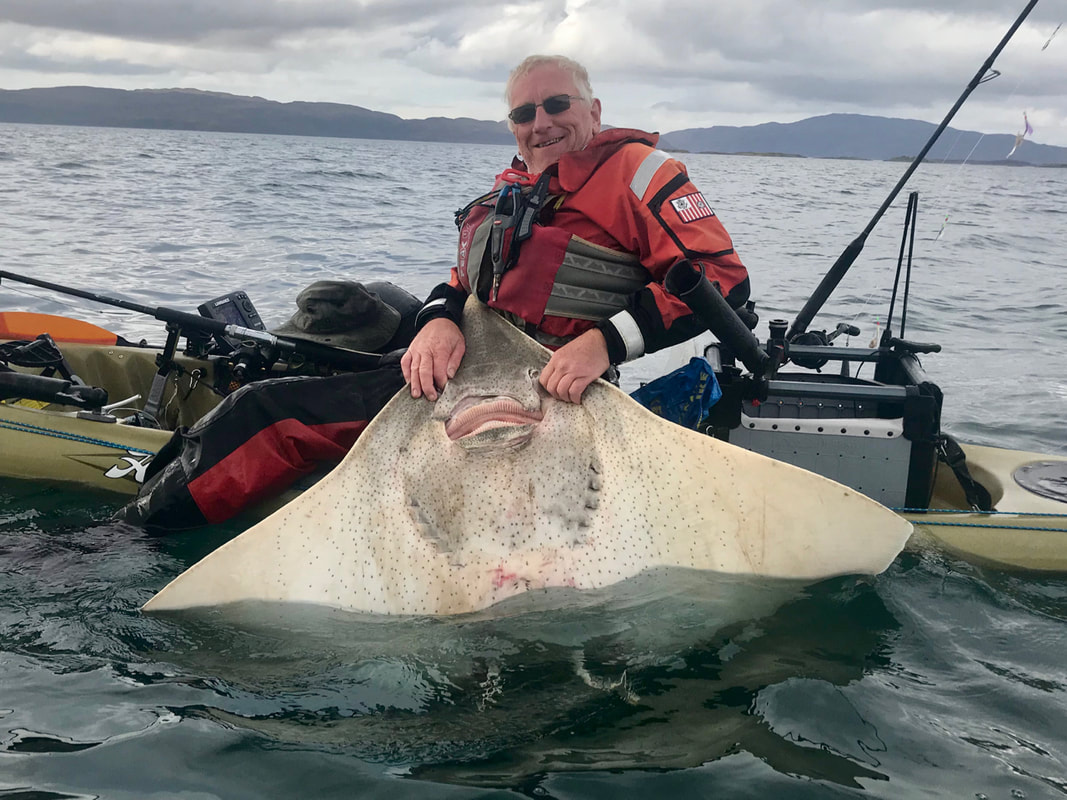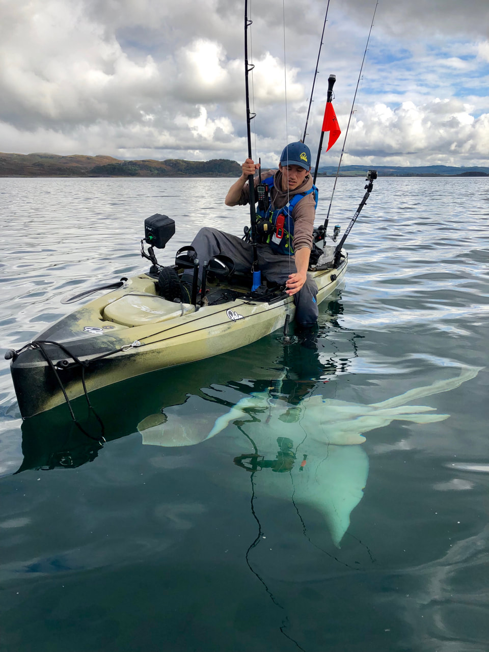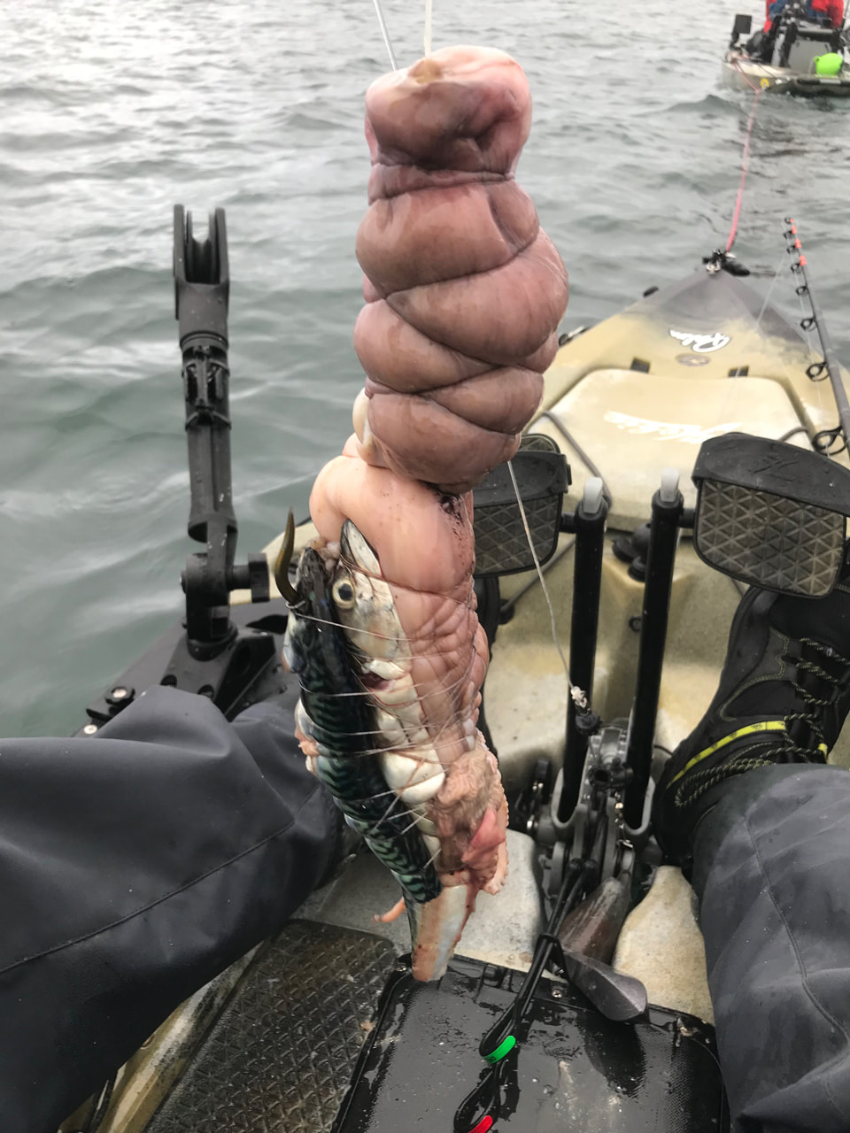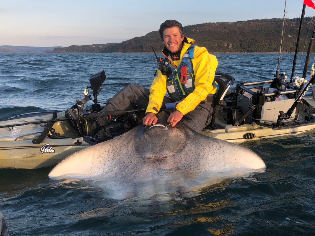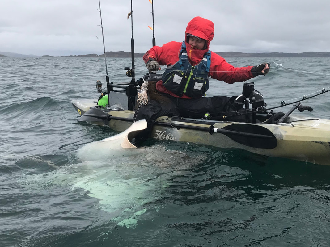 Preparing for Big Fish BattleIt is difficult to prepare for a species and venue that you only get to fish once a year. Last years trip had been a steep learning curve but lessons had been learnt and my tactics tweaked ready for my return. Top of my list was a two-speed multiplier reel. I had used an old Shimano TLD25 last year and found it a nightmare when hauling the heavy weights used up to the surface with each bait change. A reel with a low gear setting would make life easier and not tire the arms so much. It would also be a big help when playing a fish, allowing for small line gains to be achieved when in lockdown with a skate. I settled on a Shimano TLD20A 2-speed and loaded this up with 79lb Daiwa J-Braid. This would be used on a US model Ugly Stik 50lb Class Boat Rod, which had handled the skate well last year. Nothing had quite prepared me for how resistant the skate are to budging during a fight. My gear needed to be super strong without any point of weakness... and that included me! Wind-On LeadersA bimini twist was tied in the end of the braid forming a loop with near 100% knot strength. This is a knot used worldwide by big game anglers for a high-strength leader connection. My leader would be in the form of a readymade 25ft 300lb Momoi Wind-On mono leader. The thick mono is required to combat the sharp thorns and spines found on the skate. A wind-on leader allows you to wind the leader onto the reel and this means you can bring a fish right to the kayak with ease. The mono leader starts inside a length of thick hollow-core braid which, when pulled tight, traps the mono like a Chinese finger trap. The join between the mono and hollow-core is served with finer thread in such a way to prevent the mono slipping out yet providing a slim-line connection between the mono and hollow-core that will pass through the rod eyes. The hollow-core is finished with a spliced loop, to which you attach to the bimini twist loop on your braid. For this loop-to-loop connection I use a Cats Paw knot. This is effectively a loop-to-loop knot that is repeated several times – three times seems to work well without forming a bulky connection knot. This knot needs to be carefully and gently pulled tight ensuring the braid loops form neatly against each other and not overlapping. The Skate RigThe rig used is essentially a heavy-duty running leger. A homemade weight slider is passed onto the mono, constructed from a short length of thick rubber hose with a link swivel cabled tied and super-glued onto it. A large plastic bead buffers against a 250lb AFW ball-bearing swivel. I tie this onto the mono using a half-tucked blood knot. Tying knots with thick mono is never the easiest but providing you have a solid anchor point to pull the knots against, and lube the knot with some water, a tight knot can be achieved. Others use crimps but I have more confidence in knotting mono. A short trace is used to avoid deep hooking and this consists of 24 inches of 250lb mono tied to a bronzed 14/0 Mustad O’Shaughnessy with the barb ground off. Skate have very tough mouths so ensuring a sharp hook point is a must. A small diamond file makes an easy way to sharpen hook points whilst on the water. To test rig strength, place the hook around something solid and ensure the wind-on to braid connection is off the reel. Walk backwards carefully – any obvious weak points will soon give out. If it’s all holding up with plenty of pressure then you can be confident in your gear during a testing battle with a skate! First Day SuccessThe long journey North took over 12 hours, meeting Ben half way who was travelling from Lowestoft in the far East of the country. The forecast was looking reasonable all week and spirits were running high amongst our group of 8 - Mark, Martin, Stu, John, Ian, Alistair, Ben and Myself. I launched mid-morning with Ben on our Hobie Outback’s and we went in search of bait. Fishing Sabiki rigs in a shallow bay we soon had a few Mackerel. I hooked something a little different and much to my surprise a big Red Band Fish had taken one of the hooks! I have caught these in Plymouth Sound and had somewhat ruled them out as a possible target up in Scotland. I followed this up with one more on the next drop. A small Haddock amongst the mackerel was also a welcome catch. With enough fresh bait we headed out further to find deep water. We dropped an anchor in over 450ft of water, a challenge in itself from a kayak. With the anchor down and buoyed off we tied up to it and baited up. A cocktail of mackerel and octopus was bound onto the hook and sent to the bottom with a 2lb lead. Things were quiet for some time. The baits were getting the odd attack from dogfish and needed checking every half an hour as the mass of isopods present in deep water were stripping the baits to bones like mini piranhas. Quite annoying when the process of winding the rig in, re-baiting and dropping back down takes at least 10 minutes each time. We sat all afternoon without any proper bites. I dropped down a baited hokkai rig and pulled up a Black Mouth Dogfish. A deep-water shark species with large eyes, velvety skin, pretty patterning on its body and a mouth that is completely black! This was one of my targets so I was happy. It was nearly time to head in when I had good bite on the skate rod. I prepared for battle and then pulled up into a solid lump. The rod bent double and I took the strain... Skate On! With complete confidence in the rig I put the pressure on the fish and hauled it off the bottom. It had other ideas and soon powered back down. This went on for a little while before I got it moving. Half an hour later and it was at the surface. Result! Unhooking was made easy with the barbless hook and some pliers and it was soon released after some photos. A great feeling to catch one on the first day of the trip! You can see why you need a razor sharp hook and thick mono trace for these mighty fish! A tough mouth and lips covere