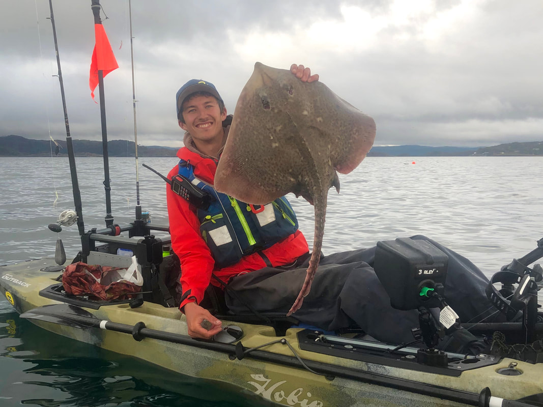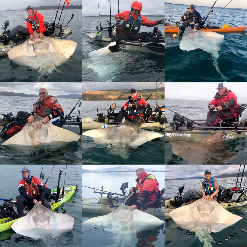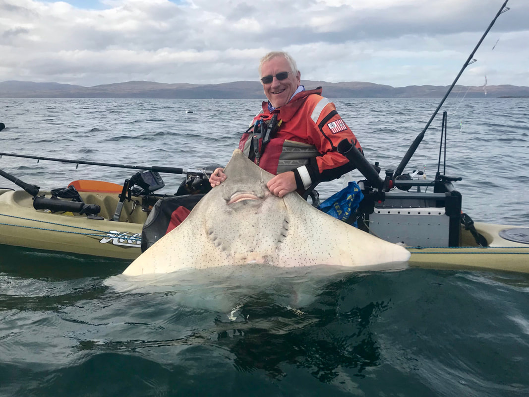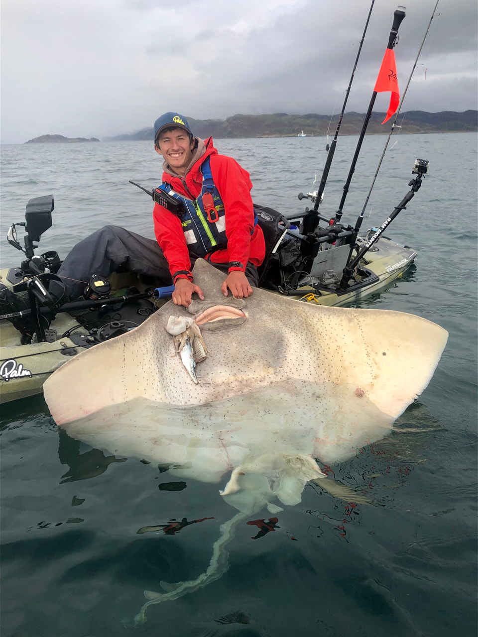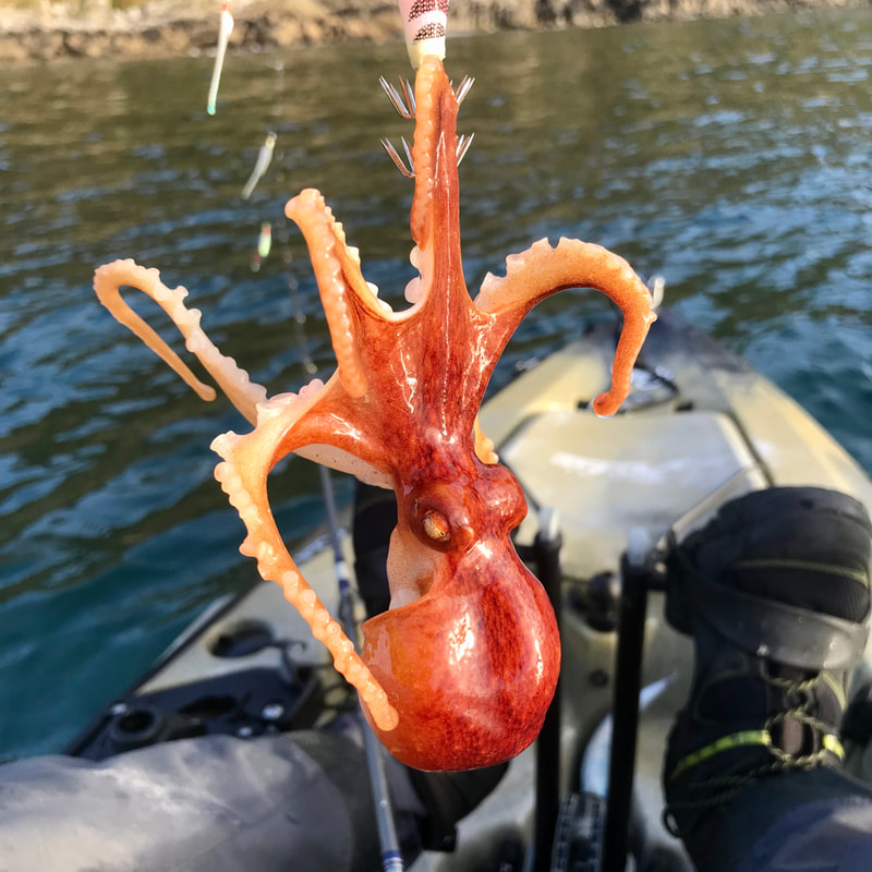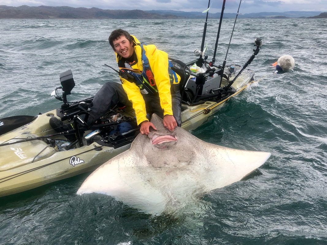 Preparing for Big Fish BattleIt is difficult to prepare for a species and venue that you only get to fish once a year. Last years trip had been a steep learning curve but lessons had been learnt and my tactics tweaked ready for my return. Top of my list was a two-speed multiplier reel. I had used an old Shimano TLD25 last year and found it a nightmare when hauling the heavy weights used up to the surface with each bait change. A reel with a low gear setting would make life easier and not tire the arms so much. It would also be a big help when playing a fish, allowing for small line gains to be achieved when in lockdown with a skate. I settled on a Shimano TLD20A 2-speed and loaded this up with 79lb Daiwa J-Braid. This would be used on a US model Ugly Stik 50lb Class Boat Rod, which had handled the skate well last year. Nothing had quite prepared me for how resistant the skate are to budging during a fight. My gear needed to be super strong without any point of weakness... and that included me! Wind-On LeadersA bimini twist was tied in the end of the braid forming a loop with near 100% knot strength. This is a knot used worldwide by big game anglers for a high-strength leader connection. My leader would be in the form of a readymade 25ft 300lb Momoi Wind-On mono leader. The thick mono is required to combat the sharp thorns and spines found on the skate. A wind-on leader allows you to wind the leader onto the reel and this means you can bring a fish right to the kayak with ease. The mono leader starts inside a length of thick hollow-core braid which, when pulled tight, traps the mono like a Chinese finger trap. The join between the mono and hollow-core is served with finer thread in such a way to prevent the mono slipping out yet providing a slim-line connection between the mono and hollow-core that will pass through the rod eyes. The hollow-core is finished with a spliced loop, to which you attach to the bimini twist loop on your braid. For this loop-to-loop connection I use a Cats Paw knot. This is effectively a loop-to-loop knot that is repeated several times – three times seems to work well without forming a bulky connection knot. This knot needs to be carefully and gently pulled tight ensuring the braid loops form neatly against each other and not overlapping. The Skate RigThe rig used is essentially a heavy-duty running leger. A homemade weight slider is passed onto the mono, constructed from a short length of thick rubber hose with a link swivel cabled tied and super-glued onto it. A large plastic bead buffers against a 250lb AFW ball-bearing swivel. I tie this onto the mono using a half-tucked blood knot. Tying knots with thick mono is never the easiest but providing you have a solid anchor point to pull the knots against, and lube the knot with some water, a tight knot can be achieved. Others use crimps but I have more confidence in knotting mono. A short trace is used to avoid deep hooking and this consists of 24 inches of 250lb mono tied to a bronzed 14/0 Mustad O’Shaughnessy with the barb ground off. Skate have very tough mouths so ensuring a sharp hook point is a must. A small diamond file makes an easy way to sharpen hook points whilst on the water. To test rig strength, place the hook around something solid and ensure the wind-on to braid connection is off the reel. Walk backwards carefully – any obvious weak points will soon give out. If it’s all holding up with plenty of pressure then you can be confident in your gear during a testing battle with a skate! First Day SuccessThe long journey North took over 12 hours, meeting Ben half way who was travelling from Lowestoft in the far East of the country. The forecast was looking reasonable all week and spirits were running high amongst our group of 8 - Mark, Martin, Stu, John, Ian, Alistair, Ben and Myself. I launched mid-morning with Ben on our Hobie Outback’s and we went in search of bait. Fishing Sabiki rigs in a shallow bay we soon had a few Mackerel. I hooked something a little different and much to my surprise a big Red Band Fish had taken one of the hooks! I have caught these in Plymouth Sound and had somewhat ruled them out as a possible target up in Scotland. I followed this up with one more on the next drop. A small Haddock amongst the mackerel was also a welcome catch. With enough fresh bait we headed out further to find deep water. We dropped an anchor in over 450ft of water, a challenge in itself from a kayak. With the anchor down and buoyed off we tied up to it and baited up. A cocktail of mackerel and octopus was bound onto the hook and sent to the bottom with a 2lb lead. Things were quiet for some time. The baits were getting the odd attack from dogfish and needed checking every half an hour as the mass of isopods present in deep water were stripping the baits to bones like mini piranhas. Quite annoying when the process of winding the rig in, re-baiting and dropping back down takes at least 10 minutes each time. We sat all afternoon without any proper bites. I dropped down a baited hokkai rig and pulled up a Black Mouth Dogfish. A deep-water shark species with large eyes, velvety skin, pretty patterning on its body and a mouth that is completely black! This was one of my targets so I was happy. It was nearly time to head in when I had good bite on the skate rod. I prepared for battle and then pulled up into a solid lump. The rod bent double and I took the strain... Skate On! With complete confidence in the rig I put the pressure on the fish and hauled it off the bottom. It had other ideas and soon powered back down. This went on for a little while before I got it moving. Half an hour later and it was at the surface. Result! Unhooking was made easy with the barbless hook and some pliers and it was soon released after some photos. A great feeling to catch one on the first day of the trip! You can see why you need a razor sharp hook and thick mono trace for these mighty fish! A tough mouth and lips covere