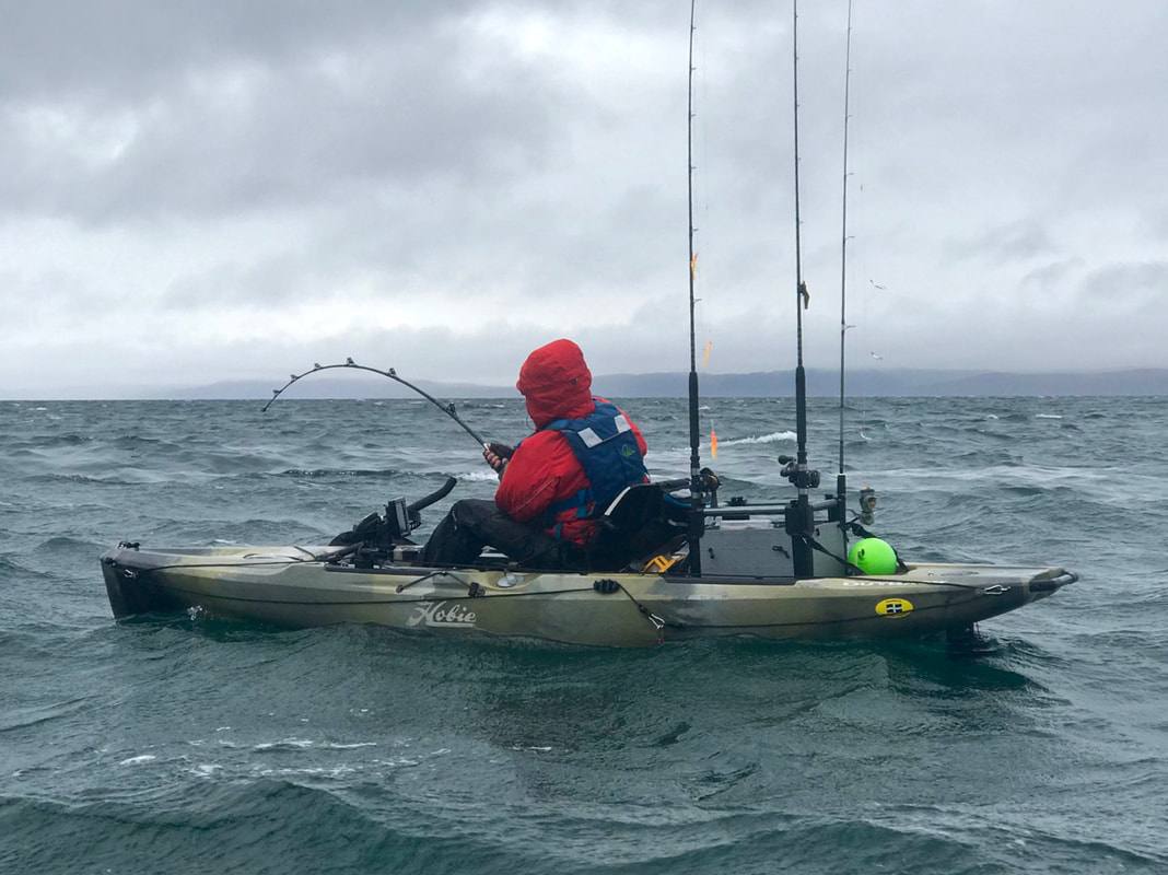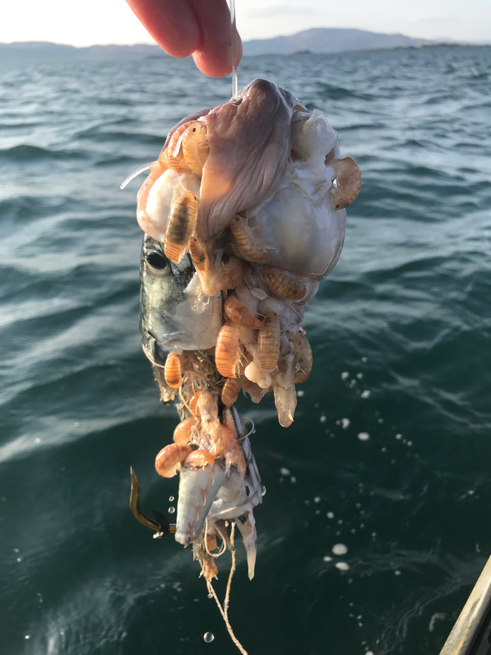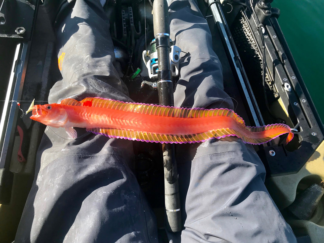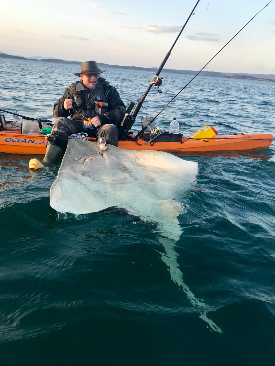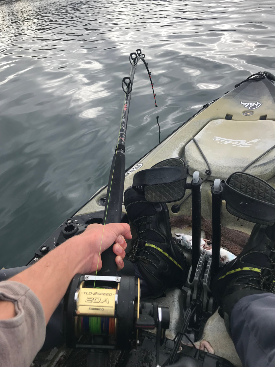 Preparing for Big Fish BattleIt is difficult to prepare for a species and venue that you only get to fish once a year. Last years trip had been a steep learning curve but lessons had been learnt and my tactics tweaked ready for my return. Top of my list was a two-speed multiplier reel. I had used an old Shimano TLD25 last year and found it a nightmare when hauling the heavy weights used up to the surface with each bait change. A reel with a low gear setting would make life easier and not tire the arms so much. It would also be a big help when playing a fish, allowing for small line gains to be achieved when in lockdown with a skate. I settled on a Shimano TLD20A 2-speed and loaded this up with 79lb Daiwa J-Braid. This would be used on a US model Ugly Stik 50lb Class Boat Rod, which had handled the skate well last year. Nothing had quite prepared me for how resistant the skate are to budging during a fight. My gear needed to be super strong without any point of weakness... and that included me! Wind-On LeadersA bimini twist was tied in the end of the braid forming a loop with near 100% knot strength. This is a knot used worldwide by big game anglers for a high-strength leader connection. My leader would be in the form of a readymade 25ft 300lb Momoi Wind-On mono leader. The thick mono is required to combat the sharp thorns and spines found on the skate. A wind-on leader allows you to wind the leader onto the reel and this means you can bring a fish right to the kayak with ease. The mono leader starts inside a length of thick hollow-core braid which, when pulled tight, traps the mono like a Chinese finger trap. The join between the mono and hollow-core is served with finer thread in such a way to prevent the mono slipping out yet providing a slim-line connection between the mono and hollow-core that will pass through the rod eyes. The hollow-core is finished with a spliced loop, to which you attach to the bimini twist loop on your braid. For this loop-to-loop connection I use a Cats Paw knot. This is effectively a loop-to-loop knot that is repeated several times – three times seems to work well without forming a bulky connection knot. This knot needs to be carefully and gently pulled tight ensuring the braid loops form neatly against each other and not overlapping. The Skate RigThe rig used is essentially a heavy-duty running leger. A homemade weight slider is passed onto the mono, constructed from a short length of thick rubber hose with a link swivel cabled tied and super-glued onto it. A large plastic bead buffers against a 250lb AFW ball-bearing swivel. I tie this onto the mono using a half-tucked blood knot. Tying knots with thick mono is never the easiest but providing you have a solid anchor point to pull the knots against, and lube the knot with some water, a tight knot can be achieved. Others use crimps but I have more confidence in knotting mono. A short trace is used to avoid deep hooking and this consists of 24 inches of 250lb mono tied to a bronzed 14/0 Mustad O’Shaughnessy with the barb ground off. Skate have very tough mouths so ensuring a sharp hook point is a must. A small diamond file makes an easy way to sharpen hook points whilst on the water. To test rig strength, place the hook around something solid and ensure the wind-on to braid connection is off the reel. Walk backwards carefully – any obvious weak points will soon give out. If it’s all holding up with plenty of pressure then you can be confident in your gear during a testing battle with a skate! First Day SuccessThe long journey North took over 12 hours, meeting Ben half way who was travelling from Lowestoft in the far East of the country. The forecast was looking reasonable all week and spirits were running high amongst our group of 8 - Mark, Martin, Stu, John, Ian, Alistair, Ben and Myself. I launched mid-morning with Ben on our Hobie Outback’s and we went in search of bait. Fishing Sabiki rigs in a shallow bay we soon had a few Mackerel. I hooked something a little different and much to my surprise a big Red Band Fish had taken one of the hooks! I have caught these in Plymouth Sound and had somewhat ruled them out as a possible target up in Scotland. I followed this up with one more on the next drop. A small Haddock amongst the mackerel was also a welcome catch. With enough fresh bait we headed out further to find deep water. We dropped an anchor in over 450ft of water, a challenge in itself from a kayak. With the anchor down and buoyed off we tied up to it and baited up. A cocktail of mackerel and octopus was bound onto the hook and sent to the bottom with a 2lb lead. Things were quiet for some time. The baits were getting the odd attack from dogfish and needed checking every half an hour as the mass of isopods present in deep water were stripping the baits to bones like mini piranhas. Quite annoying when the process of winding the rig in, re-baiting and dropping back down takes at least 10 minutes each time. We sat all afternoon without any proper bites. I dropped down a baited hokkai rig and pulled up a Black Mouth Dogfish. A deep-water shark species with large eyes, velvety skin, pretty patterning on its body and a mouth that is completely black! This was one of my targets so I was happy. It was nearly time to head in when I had good bite on the skate rod. I prepared for battle and then pulled up into a solid lump. The rod bent double and I took the strain... Skate On! With complete confidence in the rig I put the pressure on the fish and hauled it off the bottom. It had other ideas and soon powered back down. This went on for a little while before I got it moving. Half an hour later and it was at the surface. Result! Unhooking was made easy with the barbless hook and some pliers and it was soon released after some photos. A great feeling to catch one on the first day of the trip! You can see why you need a razor sharp hook and thick mono trace for these mighty fish! A tough mouth and lips covere