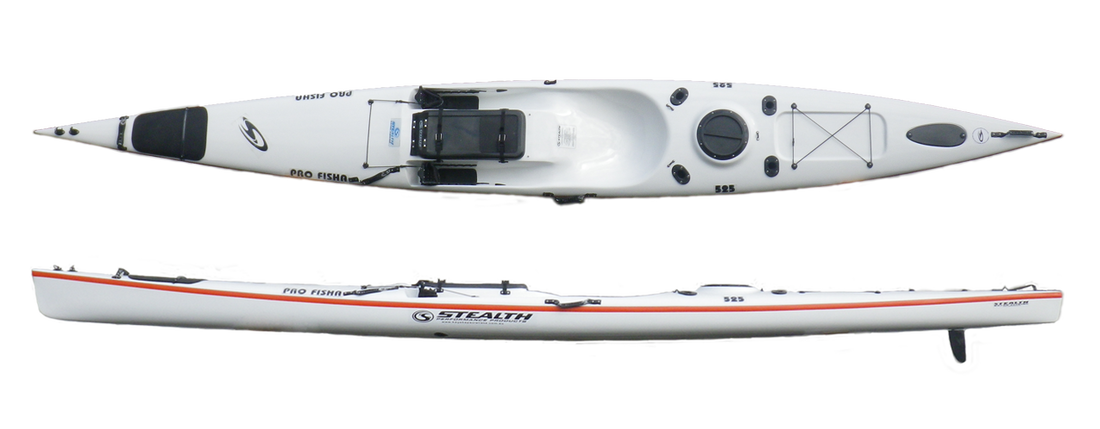 Composite KayaksComposite fishing kayaks are usually performance-orientated hulls constructed from fibreglass, and have narrower beams (width) than plastic kayaks of similar lengths. They are more aimed at experienced/confident paddlers over novices. A composite hull has a number of advantages over a plastic hull, primarily having a lack of any flex along the hull giving them great speed and performance when pushing through messy conditions. Their super smooth gelcoat hulls glide really well too. For paddlers looking at long distance trips at sea then glass kayaks are worth considering. Whilst having advantages they also have several disadvantages including higher price tags and a need for care when paddling around rocks and other solid objects to avoid damaging the hull. Many experienced saltwater kayakers have turned to composite hulls to allow them to paddle further more easily and through rough conditions more comfortably. There are a few models that have become popular in the UK, from Kaskazi kayaks and Stealth Kayaks, both manufactured in South Africa. These are usually custom made to order with the buyer getting to select the colour pattern used on the hull. Kazkazi Kayaks UK even offer on-water training as part of any new kayak purchase for both new and experienced paddlers. Now that is what i call great customer service! Kaskazi Dorado 2 - DISCONTINUED