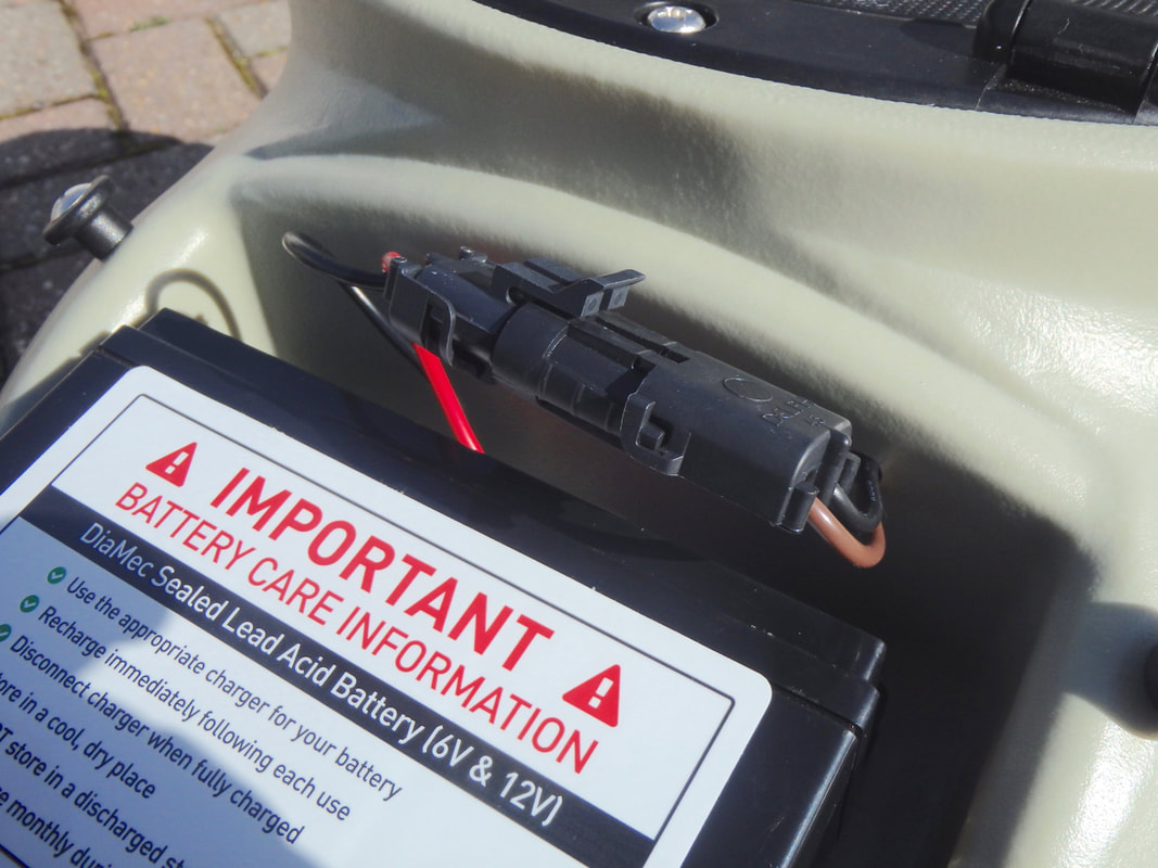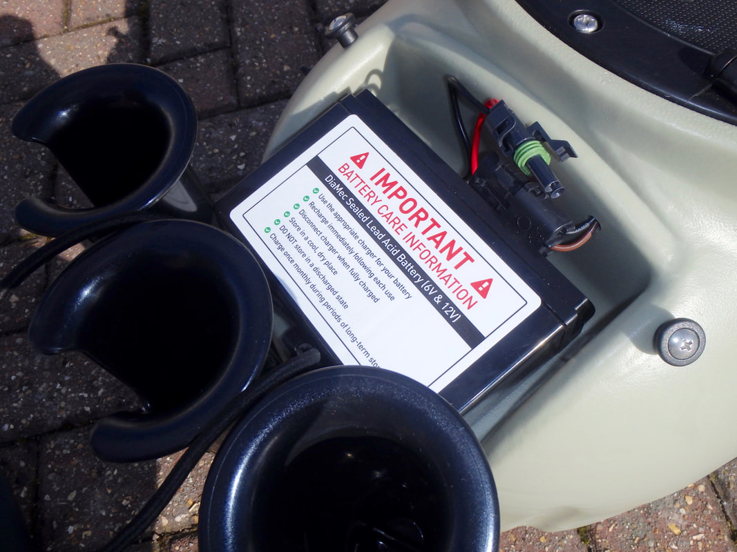 A live bait tank for your Hobie kayak!I was a little apprehensive on splashing out on the Livewell but upon opening the box i could see that it was a quality and well designed piece of kit designed specifically to work with Hobie kayaks. An intake tube inserts into one of the cargo area scupper holes on a Hobie Kayak. An Attwood Tsunami pump then fills the live well with fresh sea water and a height-adjustable outlet tube drains water out through the other tank-well scupper hole! This flow-through system is perfect for keeping bait-fish in prime condition with a continuous supply of cold oxygenated seawater, holding upto 7-8 gallons if needed. The pump is powered by a 6V battery providing a flow rate of 250 gallons per hour, but can be ramped up to 500 gallons per hour with a 12V battery! It has 3 rod holders built-in too which is handy, with the option to add a further two if required. The Hobie Livewell is just the tool for keeping bait fish such as Mackerel and Sandeels alive, along with crustaceans such as crabs and prawns/shrimps. Fresh and lively live bait is a very effective bait to use for some species, including Bass, Pollack, Tope, big Rays and other predatory fish. Hobie Livewell Features OverviewLets take a closer look at the Livewell and it's features... At the rear of the livewell there are 3 vertical rod holders, with wide flared tops. The rod tubes feature a reel notch/slot although i've never found a rod with short enough butt to position the reel within the notch. The tubes also feature leash points and drainage holes at their base. There is the option to install an extra 2 rod holders beside these for those wanting to carry more rods! The livewell has a soft touch carry handle at the front end, for easy handling off the water. Access to the livewell is via an 8in Twist and Seal hatch. This provides a large opening to throw bait fish into, or grab them from! Looking inside we find the main livewell, which has a completely smooth finish with rounded corners. This minimises fish getting caught up with there noses in a corners and promotes them to swim/move to ensure water flow across the gills. At the front end of the livewell we find an Attwood Tsunami pump that is self priming with the forwards motion of the kayak. This pump will provide a flow rate of 250 gallons per hour with a 6V battery, but can be ramped up to 500 gallons per hour with a 12V battery! On the opposite side of the tank we find a hole, which takes the outlet pipe. The outlet pipe is effectively just a short length of PVC pipe with some holes drilled in one end to act as an overflow point. The pipe can be slid up and down to adjust the height of water held within the livewell. In it's highest position the livewell will hold around 8 gallons (36 litres) of water! The wiring for the pump runs up to a switch and the battery, and a section of tubing over the wires stops any bait fish getting trapped between the wires. The pump does not have a one-way valve which is a shame. This means if the pump is turned off the water in the tank well will drain away. The pump does however come with a black cap to place over the pump outlet to prevent water draining back through it if you want to hold water in the tank without flow. This will be handy for carrying crabs or prawns, which don't necessarily require a constant flow of water, or small delicate baitfish that may be harmed by flow. It would be nice to see a place to store the black cap within the livewell as i have a feeling it may get lost! I think i'll make a little leash for it to attach to the wiring running up from the pump. The livewell is supplied with a DiaMec 6V 10Ah sealed Gel battery. This is a quality battery and because it is sealed it can be placed at any angle during use and the battery is maintenance-free. This will power the pump for approx. 10 hours of constant use when fully charged. The battery terminals are covered and wiring sealed in place. Note the Battery Care Information: