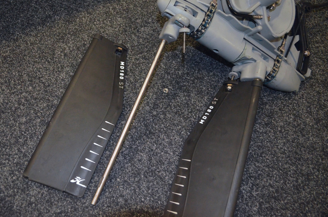 These kits are readily available from Hobie dealers - i purchased mine from Cornwall Canoes where they can be purchased in-store or on their website with delivery - see here for more information. Fitting MD180 ST Turbo Fins to a Mirage Drive 180This is a fairly straightforward install - allow 20 minutes or so to carry it out. Step 1 - Removing the MD180 ST FinsIn order to remove the fins from the 180 drive, you'll need to gain access to the top of the rotating boom which holds the fin masts. To do this, pull the reverse toggle slowly until the fins rotate 90° - this will reveal the top of the boom. Take a closer look at the top of the boom and you'll see the top of the fin tensioning bolt thread, which has a hex head. This sits within a plastic housing which slides side-to-side within a carrier channel during use, allowing the fin to flex. The bolt runs down through a thumb wheel and then into a nyloc nut located on the fin. This holds the fin in place on the mast and keeps it attached to the boom. This bolt must be undone from the fin nut to allow fin removal. To do this, use the 1/8" Allen Key on the bolt head and hold the fin nut using a set of pliers. Now simply unscrew.... Once undone, the fin should slide straight off the mast. Put the fin nut somewhere safe as you'll be needing that later. Now repeat with the other fin to reveal both masts. Step 2 - Removing the MD180 ST MastsTime to remove the masts. The mast ends are threaded and screw into the boom within a brass threaded insert. These are dipped in Loctite thread locker when installed in the factory to prevent them loosening during use, and are then screwed quiet tightly into the mast housing. This can make them a complete pain to undo and will require a lot of forceful persuasion to release them! Pliers are required for this job. Look closely towards the end of the mast and you'll find a flattened area. Use a pair of pliers to grip this area tightly and then twist to break the loctite bond within the mast housing - this can take a lot of force and may feel like you'll break the drive but persist with it. I find rocking the pliers can help to crack the loctite and release the mast. If it really is not wanting to undo, then grip the mast within a metal vice and twist the whole drive itself to provide more leverage. Once the bond is broken, the mast will simply unscrew.... hurrah! Step 3 - Instaling the Turbo Fin MastsNow that the ST masts are removed we can replace these with the longer ST Turbo masts. The masts have a threaded end which screws into the mast housing... A 0.5ml tube of Loctite 243 Thread Locker is supplied with the kit - put a drop of this on the threads before screwing into place to ensure a strong hold so that the masts won't loosen during use. Screw each mast into the housing on the boom and screw up to a snug fit using pliers on the masts. Step 4 - Fitting the MD180 ST Turbo FinsNow that the Turbo Masts are installed, we can fit the ST Turbo fins. Firstly, slide the fin onto the mast... The fin can then be re-attached to the boom using the fin tensioning bolt. Use the 1/8" Allen Key to tighten the bolt down into the fin nut, using pliers to hold this in place. Tighten until the bolt end is flush with the end of the nut. Repeat with the other fin.... Installation is now complete! The fins can then be re-tensioned to the desired amount. Using the thumb wheel, adjust the bolt downwards (counter-clockwise) so that the nut sits at the bottom of the fin notch and this sets the fins in their tightest setting. They flex less in the water, providing more resistance - this results in greater top end speed but is harder work on the legs! Adjust the bolt upwards (clockwise) until the nut sits at the top of the notch of the fin sets their slackest setting. This provides greater low end torque with easier pedalling at cruising speeds. Mine are a little loose and can move during use, but a small dab of loctite has sorted that out. I find having the nut sitting about a a 3rd of the way down from the top about right - not completely slack but not tight enough to be hard work on the legs. Hobie warn not to over tighten the fin tensioners - the fin must be able to move from side to side in the traveler slot located in the boom. If the fins are too tight, it will lock up and not move in the traveler slot, potentially causing damage to the fin or the adjustment hardware. Hobie Mirage Drive 180 with ST Turbo FinsMy Mirage Drive 180 is now equipped with the MD180 ST Turbo Fins and is ready for use with the Revolution 16, providing greater performance with higher top end speeds and a lower cadence whilst at cruising speeds. Happy days!