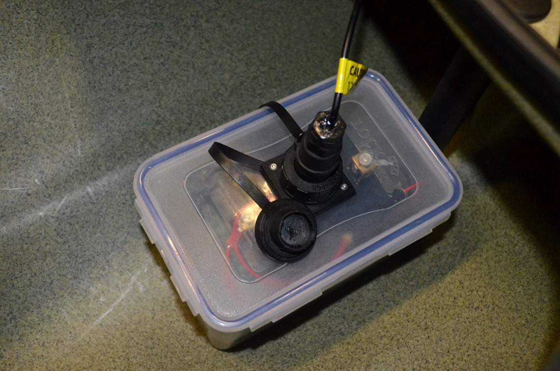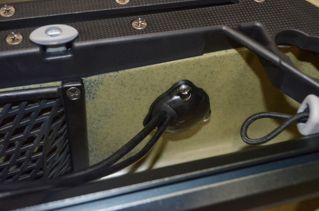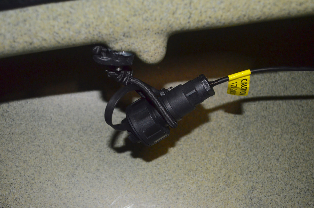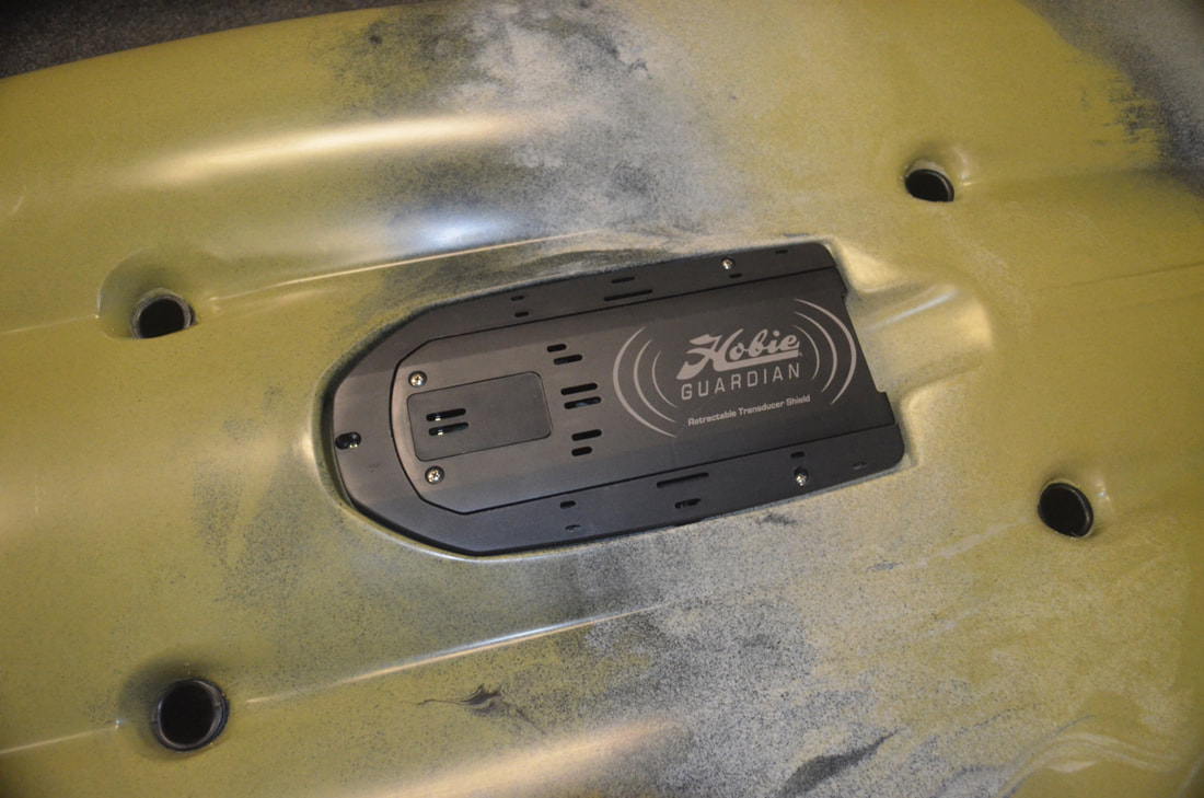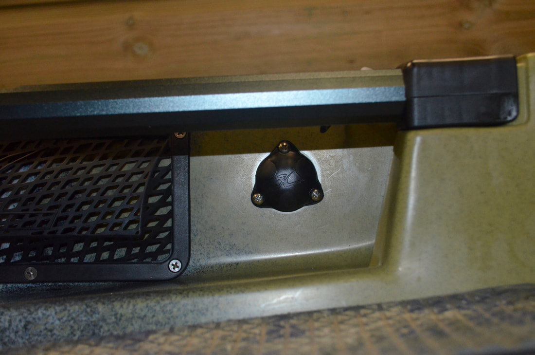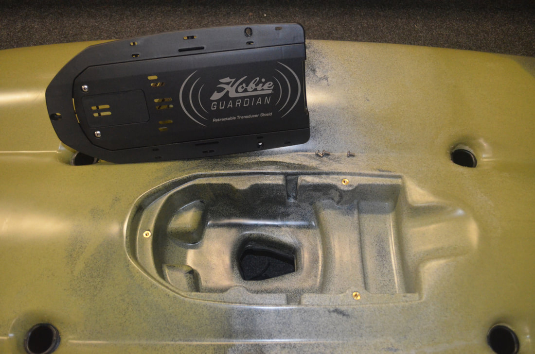 There are 3 main parts to this installation: mounting the main head unit, installing the transducer and wiring in the power supply. I'll start with the transducer... Installing the Raymarine Dragonfly Transducer to the Hobie Guardian Transducer ShieldThe new Hobie Outback comes fitted with the Hobie Guardian Retractable Transducer Shield. This is the latest development in the kayak fish finder installation world, making it super easy to install a wide-range of fish finders to the kayak including side-scan units with large transducers that must sit proud of the hull. These large transducers can be bolted to the bottom of the shield, which sits on a bungee cradle. The shield can be fully retracted within the hull by simply pulling a toggle and cord in the footwell. This raises the shield within the confines of the kayak protecting the otherwise exposed transducer from any damage when launching, landing, transporting and storing the kayak. Standard Dual-Beam, CHIRP and DownScan transducers can be installed on the topside of the shield, completely protecting them from any potential damage. To access the topside of the shield it is a case of unscrewing 3 bolts holding the shield frame to the hull. The recess beneath the shield is pretty big, measuring approx. 35cm x 15cm. The top side of the shield features two upright plastic mounts for transducer attachment. The Dragonfly transducer is fairly long and if placed on the shield the transom mount does not line up with the transducer mountings. Hobie provide a 'universal' transducer adaptor and transducer fittings with the Outback to allow you extend the attachment point forwards or backwards of the mount to suit your transducer. Using these mounts and the supplied bolt, nyloc nut and rubber friction washers it was fairly easy to fit the transducer. The friction washers must be used either side of the transducer mount eyelet so that fine adjustments can be made to its position and when tightened down it will hold firmly in place. The transducer must be raised a few millimeters to allow for water flow between the transducer and the shield. The sonar will shoot through the thin plastic shield with very little loss of resolution. One Dragonfly transducer fitted! It is now just a case of passing the transducer cable to the deck side of the kayak through the transducer scupper hole. To access this, a black cover plate must be removed beneath the seat. The cover is held on with a single screw and removing the plate reveals a pulley and cord. This is the cord which operates the retractable aspect of the Guardian Shield. As standard this is not connected to the shield and just tied to the pulley. To activate the retractable sheild you have to remove 6 screws from the top side of the shield, holding the central plate to the frame. Once undone the plate will retract on a bungee system. The cord from the pulley can be tied to the bridle on the plate to complete the system. When the transducer toggle is pulled in the foot well the shield will raise up into the hull. I do not require the retractable option so have left the 6 screws in-situ. Simply pass the transducer and power cable up through this scupper hole onto the deck and then screw the Guardian Shield back onto the hull. The transducer and power cable must then be passed back into the hull through the 3-Way Thru Hull fitting located just forwards of the cover plate. Simply unscrew the 3 small self-tapping screws holding this to the kayak. The thru-hull fitting features a rubber gasket and a design where three rubber plugs can be removed and replaced with cable seal plugs. The Outback is supplied with numerous plugs with various diameter holes to work with various power/transducer cables. It is just a case of finding the correct one for your cable and placing this around the cable and slotting it into the thru-hull fitting. Screw the fitting back onto the hull and the transducer is now fitted to the kayak. Super easy! Wiring in the Fish Finder Power SupplyPrior to connecting up the power source i needed to decide which side to mount the fish finder, as i would have to pass the connector and cabling out through a thru-hull fitting on the chosen side. I opted to fit the unit on my right hand side. The first step was to remove the 3-Way Thru-Hull fitting fitted in the side storage area of the cockpit beside the hookless pocket. The connector that plugs into the back of the unit can then be pushed through the hole beneath the fitting, from the inside of the kayak out onto the deck. You can gain easy access to do this through the centre hatch. It is then just a case of selecting the right size rubber seal to fit around the transducer and power cable and fitting the thru-hull plug back to the kayak. Easy! Just remember to pull enough cabling through to allow for the connector to reach the unit wherever you wish to mount it. I left enough spare so that the fish finder could be mounted at the furthest point on the outside H-Track if needed. As usual there is loads of excess transducer cable now in the hull. I tidied this up using a couple of cable ties and attached it to the scupper hole to keep it out of the way. Time to attach the power source. The Dragonfly runs off a standard 12V power supply, and most people opt for a rechargeable sealed lead acid battery. I have recently moved over to using a Lithium-Ion battery, which are much lighter than the lead acid batteries, thus saving important weight on the kayak. I have put together a complete guide on how i built a waterproof lithium battery box which can be viewed by clicking here. This battery box uses a Index Marine Bulgin 2-Pin Waterproof Socket as a connection point. I would need to fit a Bulgin 2-Pin Waterproof Plug to my fish finder power lead to allow me to connect to the battery box. Take note of the grey wire - this is a drain wire and is not required for installation on a kayak, i trimmed this back to the outer wire coating. These plugs offer a wa