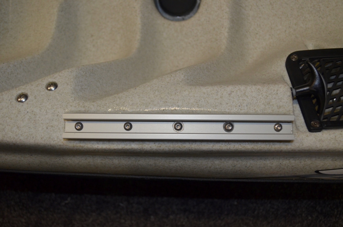 YakAttack GearTrac GTTL90 Slide TracksThere isn't a great amount of space around the footwell of the Revo 16 for accessory mounting. There is a small flat space just forwards of the side pockets, where there is just enough room for a Railblaza Starport HD, a Scotty Rectangular Deck Mount or a Ram Mount with Diamond base. There is also a flat space at the front of the footwell around the sail mount where base mounts could be fitted. However, I didn't want to be limited to accessories from just one brand, nor did i want a chunky deck mount protruding from the hull. I needed something more versatile and less obtrusive.... i needed slide tracks! Slide tracks are great and many fishing kayak now come with them as standard, however the Revo 16 does not. They allow you to install various accessories quickly and easily whilst allowing for adjustability in the positioning of each accessory. All of the main accessory brands (e.g. Railblaza, Ram Mounts, Scotty) make accessory mounts that are compatible with slide tracks so you can be very versatile in your accessory set up and not be limited to accessories from just one manufacturer. It was just a case of choosing which after-market slide tracks to go for. There was only really one contender... YakAttack! YakAttack are well known for their high quality slide tracks, which they name GearTrac. The latest model is the GearTrac GTTL90. The GTTL stands for 'Gear Trac Top Loading' and this is a design which allows for accessory track mounts to be fitted to the track from the top, rather than sliding in from the end of the track. This makes loading and moving accessories around a bit easier. The GearTrac GTTL90 is made from a marine-grade aluminium and is designed to withstand saltwater abuse. They are low-profile too. Hobie sell GearTrac GTTL90 pre-packaged with installation bolts and a YakAttack FullBack Backing Plate. The backing plate is made from 1/4" thick anodised aluminium with threaded holes for the installation bolts to screw down into. This makes for a very strong installation and can be used wherever there is a flat area inside the hull for the backing plate to sit against. The tracks are available in 4", 8" and 12" kits, and i purchased mine from Cornwall Canoes - see here. I opted for 3 lengths of the 8" GTTL90 GearTrac kits. I would install one on each side of the footwell, and one at the front of the footwell. This would give me plenty of options for accessory mounting. Here is how i installed them.... Tools Required