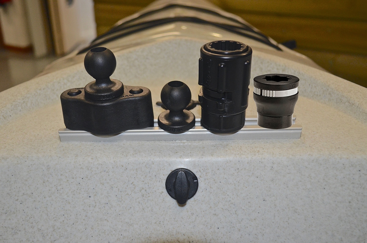 Fitting YaAttack GearTrac GTTL90 to the Revolution 16I would be installing a length of GearTrac either side of the footwell, on the flat space just forwards of the side pockets. In this position there is plenty of room beneath the area for the backing plate and bolts to protrude without interference of any of the rudder control lines. The 8 Inch track uses 5 bolts for fixing, so the track was put in position and the 5 holes marked out. The holes are then drilled using a 4mm drill bit... The GearTrac and FullBack backing plate were then subject to a good smearing of Marine Goop adhesive/sealant to ensure a strong and waterproof fitting. Then it is just a case of placing the track back over the holes, reaching inside the centre hatch and positioning the backing plate on the other side of the hull and screwing the bolts down into it until it a solid fix is achieved. Any excess sealant can be smoothed down using a wet finger. One 8" GearTrac GTTL90 fitted.... The same process is then applied when fitting the track to the other side of the footwell. Onto the front of the footwell.... There is a good amount of space for mounting accessories on the flat area around the sail mount. It makes a great spot for installing another length of GearTrac. Holes marked and drilled.... Plenty of Marine Goop again and the track was fitted by reaching inside the bow hatch with the backing plate. There is still plenty of space for more accessory mounts or slide tracks if needed into future too. Here is the FullBack backing plate, lagged in Goop and fitted against the hull in behind the sail mount. A strong and waterproof fitting. All 3 sections of GearTrac fitted.... Simple, easy and tidy! The GearTrac GTTL90 can be used with the YakAttack Screw Balls and Ram Mount Quick Release Track Mounts for the mounting of Ram Mount gear, the Scotty Gear Head Adaptor for the mounting of Scotty gear and the Railblaza StarPort MiniPort for the mounting of Railblaza gear. I now have a versatile accessory mounting system where i can position multiple accessories, from various manufacturers, on either side and at the front of the foot well. Accessories can now easily be mounted at the start of a session, and then removed at the end, leaving behind a clutter-free hull for transport and storage. Job done!