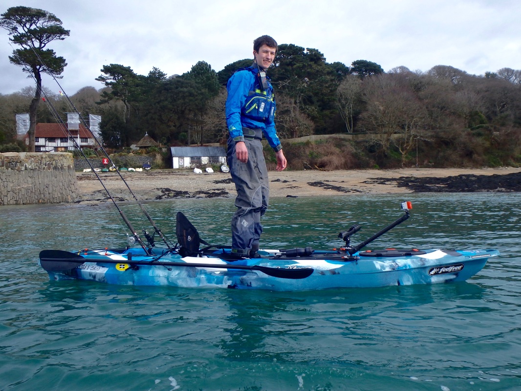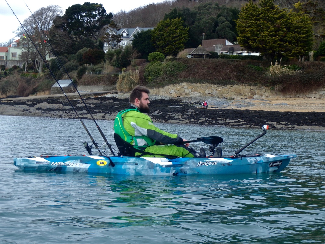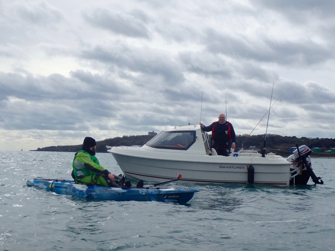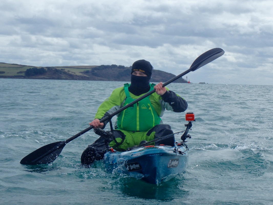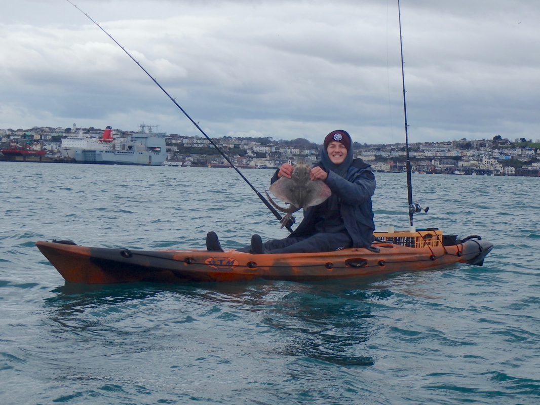 This winter has brought awful weather. So much so that when the wind was forecast for 15-20mph on Sunday i saw this as a good enough break in the weather to hit the water. It would be cold though. It has been a long time since i have planned a session on the water. I had been out for a short session in February on the Lizard with Chris of the Canoes Shop Group, but this was mainly to get a few images for the CSG shops websites. I really enjoy catching Ray from the kayak. I have had plenty of Blonde Ray, a few Small Eyeds and an Undulate last year at Swanage, but there was one obvious one that i still had not targeted - the Thornback. This is a prolific species in some parts of the country but they are not so widespread in Cornwall, being mainly found in tidal estuaries and rivers such as the River Fal, the River Helford and within the Tamar Estuary. I don't often kayak fish the estuaries and rivers as i much prefer being out on the open coast, but there aren't many open coast marks that regularly produce Thornbacks where you could target them with a reasonable chance of catching one. With the fairly bleak weather forecast it was a good a time as any to tuck away within an estuary and try to catch my first kayak Thornback Ray. Andrew from Cornwall Canoes, and my brother were also keen to get out on the water. I had scoped out a nice little launch venue to try out too, so it was off to the Fal estuary to fish the rising tide. Andrew was taking his new Feelfree Moken 12.5 out for the first time so we spent a while messing around in close on each others kayaks... I had a quick paddle of it too. Its a very stable kayak.... It paddled reasonably well on flat water too for a wide fishing kayak. Its not a kayak for me but then i am used to my Tempo and thats a different kayak all together. I can see the Moken's appeal for newcomers to kayak fishing who want a really stable platform over performance. Anyhow, back to paddling the Tempo! Andrew had a quick go too. Despite maxing out the Tempos capacity he managed to get on well paddling it on the calm water. Enough messing around. The tide was flooding and it was time to paddle out to the mark. The plan was to anchor up on the drop off to the deep channel in the middle of the Fal. Kieren was anchoring on his own and Andrew would be tethered off my bow. Anchors down and we started fishing. Something wasn't quite right and the baits were dragging on the bottom. Either the anchor was slipping or the weak link had snapped. Bugger it, lets slow drift for a while. The wind was freezing and the hands soon went numb. Andrew had a good idea.... Phil popped over on his way out offshore to search for some Mackerel and Pollack, in his new Smartliner 17. I fitted a Raymarine Dragonfly 6 to it for him a few weeks back and it all seemed to be working well. I had a trip out with him a few weeks back and we hit a massive Mackerel shoal which was fun and a good sign for February. After half an hour or so we were in 30m of water in the deep channel and quite a way off the mark i wanted to be on. Up the anchor comes and the weak link had broken - mishap no.1, well more of an inconvenience more than anything. Its the first time I've had one trip on me too and i quite regularly anchor two kayaks off the one anchor. We started to paddle back too the mark. Take a good look at this photo - note that the paddle has two blades..... Shortly after this photo Andrew shouted some expletives. He had managed to snap one of the blades off the paddle....bugger! Mishap No.2 but not the end of the world, we were in reasonably calm conditions, were well equipped to carry out a tow back to the launch and Andrew could J-stroke with the one blade to paddle the short distance back to the anchoring spot. Back on the mark and we sat waiting for something to find the bait. The finest strips of mackerel or Sandeel/mackerel cocktails were sitting on the bottom waiting for the Thornbacks to find. That bloody wind though - my hands were seizing up and my feet were numb. About an hour passed without a bite but then Kieren had an enquiry. He was soon latched into it and after a short tussle a Thornback arrived at the surface - his first from the kayak. I had a small bite not long after, struck and Mishap No.3 occurred - the reel handle snapped on my Abu 6500! Luckily i had not connected with the fish. The reel had not done bad though, i brought it second hand in 2010 and it has been used solely on the kayak the last 4 years. A simple fix though as a new handle is less than a tenner. The reel was still just useable as i could twist the remaining section of handle without too much difficulty so back out went the bait. We were all starting to get a bit too cold and the rain was threatening to fall. Another bite....typically on the rod with the broken reel. The classic ray bite soon turned into a bent rod as i slowly reeled it towards the surface. My first Thornback Ray from the kayak was soon on the Tempo! Target achieved, that was me happy. A well-marked female and only a small one but that didn't matter. A few quick photos later and it was making its way back to the seabed below..... The cold had now become too much and it was raining. It was near impossible to put bait on with seized up hands. Andrew borrowed my paddle to go for a spin to warm up whilst i retrieved the anchor. We set up the towline and started to make our way back in, Andrew using his one blade to take some of the load off the tow.... well until he snapped the other blade!! Unbelievable! He was going full throttle on one blade though! I was cruising along at a steady 2-2.5 knots against the wind and rain and we soon made it back in. Im glad i was on the Tempo.