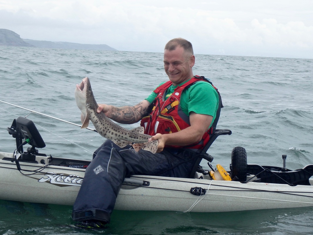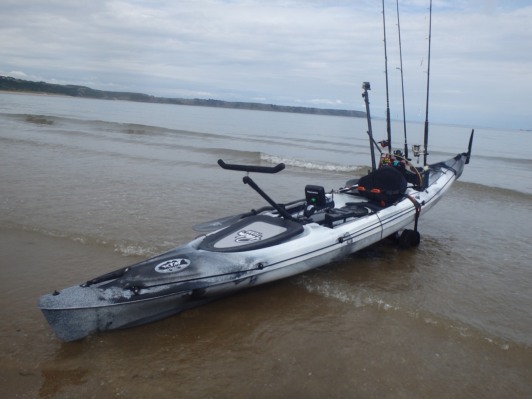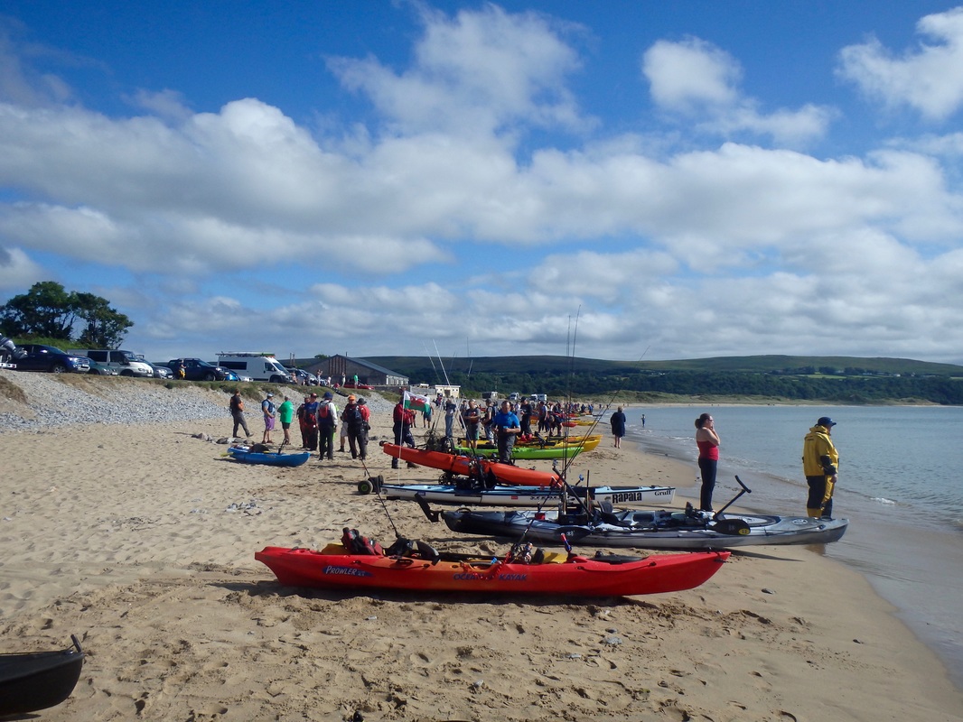 ThursdayI had a pass to use the Cornwall Canoes T4 van for the weekend so loaded it up with gear and headed for South Wales early on Thursday morning. A slight roadworks detour via North Cornwall saw me arrive a little later than planned. I pulled into Gower Farm campsite mid-morning to a field already half full with keen kayakers. The T4 basked in the sun whilst i set up the tent quickly. Next it was off to the beach a short drive away where a few others were getting ready to launch. The tide was ebbing and the waters edge was getting further away from the car park. Oxwich has a very shallow sloping beach and a big tidal range, meaning that there is a long long walk from the low tide point back to the car. Eventually i was at the waters edge and ready to go. The plan was to head out to the deeper water to try and tempt a Tope. I stopped off half way out and picked up a few strings of mackerel which seemed to be plentiful. Ben, Martin, Mark, Steve and a few others were already out fishing and things weren't looking positive on arriving to them as none of them had found a Tope. It was still worth a try though. Anchor down and a mackerel flapper was soon heading towards the bottom some 70ft below. Bites didn't take long to come, but they weren't the solid bites from a Tope.... instead it was the tell tale pulls from a Dogfish. Bugger. A few doggies later and something heavier was on the end. It was fighting like a Huss and i wasn't wrong, a sizeable fish around 10lb was soon on the surface but once beside the kayak i could see it wasn't actually hooked and only biting onto the mackerel. One look at the sunshine and it released to return to the bottom. Ah well, at least something different took a baited feather rig.... my first Scad of the year. Martin was out on his new Hobie Revo 16 and found his first Huss which he had some fun with wrestling for a photo.... The dogfish were getting annoying so i headed in to the wreck of the Solor, located just a couple of hundred yards off the rocks. The mini species were biting and i soon had a few wrasse species, pouting, poor cod and others. It had been a long day so it was back to the beach for the dreaded was back to the car over the rippled sand. Back to the campsite for food, a few beers and fishing talk! FridayAn early start. The sun was shining bright through clear blue skies and It was feeling like a proper summery day. After the army of dogfish attacking static baits yesterday i fancied doing a bit of drift fishing. Ben and his mate Glenn were also keen to do the same so we headed out towards the headland to start fishing. One rod down with baited hookais, and another with a single hook with ragworm. I used the Raymarine Dragonflys 'Track' feature to mark my drifts. This is a useful tool as if you find the fish you can replicate the same drift to hit the fish again. If they aren't biting on a particular drift you can make sure you drift different ground on the next drift. The fish were patchy but i started to pick up a few fish. First up was a colourful Tub Gurnard.... and then a Red Gurnard... A few more gurnards and then a few dabs and dogfish turned up. The tide was dropping fairly fast and the bites were edging off with it. A fair tidal race was setting up around the headland and we were quickly drifting into the start of it. Ben started to paddle in, i upped my rods and began to follow. Glenn was just behind me but was close to the edge of the race where white water and waves were forming in the strong flow. He was paddling so i assumed he was making headway. I turned around to check on his progress a minute or so later..... he was no where to be seen. Thats not good and the moment of realisation sank in. I kept an eye amongst the waves and eventually saw a paddle blade, and then Glenn on his kayak as he rode over a wave. Bugger, he is in trouble. At least he was still on his kayak but it was obvious he was struggling. I raced over to Ben and told him to keep an eye on me and i would sit on the edge of the race and try to get him to paddle towards land where the current seemed to drop off. I headed into the waves and it was messy! I was paddling with the flow at 8 knots and without paddling i was drifting at 3 knots.... great! Glenn was tiring but he managed to make it across the current into a calm area against the rocks on the headland for some much needed rest. Ben had alerted a boat that was heading around our way and they came over to see if we needed assistance. It was a family on a RIB and they reluctantly gave Glenn a tow back around into the bay, as they were in a rush!! The only rush i could see was the water flowing around the headland, and the need to get Glen back into the calmer waters of the bay. I powered off back into the messy stuff and despite the water belting past me i made a steady 1-1.5 knots against it. 10 minutes or so later and i was back out of the danger zone. I wish i had the Go Pro running (wasn't a priority at the time) as i had a few hairy moments with waves coming side on at shoulder height and crashing over the kayak but the Rytmo performed admirably and got me through it. It was quite fun actually and i'd happily paddle in it again! An interesting half hour or so but luckily all ended well. Back in the safety of the bay, and after a rest, it was time for a try on the wreck again. The ground around the wreck is as rough as rats so i was using a 'cheap' homemade anchor comprising of a brick wrapped in cord! It worked a treat in the calm slack water. It was hot, really hot. Not a breath of wind either. Ben had joined me on the wreck for some mini species bashing. Ballans, Corkwings, Poor Cod, Pouting, Pollack and some other bits showed up along with a fat Goldsinney Wrasse. An hour or so of mini fish bashing on the wreck and it was time to call it a day. Back to the campsite via the chippy (a good call!) to see the field filling up with kayak anglers ready for the mornings competition. The evening was spe