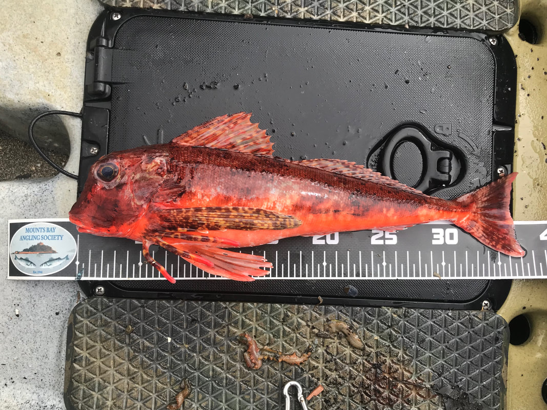 I started this meet back in 2014 and wanted to offer something a little different to the usual kayak events and comps. This was to be a relaxed meet with no rules other than a preferred venue to all fish from, and what better place for this than the Westernmost launch-point on mainland England – Sennen Cove. It is a casual affair where kayak anglers could meet up to go fishing without any pressure to perform. There is a dedicated campsite at Ponsandane Penzance that everyone could use and socialise at in the evenings, with a beer over the campfire. It was a great success from the off! Fishing in some of the most productive waters in the country offers something for everyone, from those looking for big specimens to the die-hard species hunters looking to up their tally and everyone in between. Fishing at the westernmost tip of the land comes with its challenges. Sennen is a world-class surf beach and for great waves you need swell, and Sennen is exposed to lots of it! Feeling the full brunt of the Atlantic, you need calm weather to safely fish this venue. Some years have seen the meet only fishable for a few hours, and other years have been exceptionally calm with over 50 kayakers enjoying several days fishing on the water. Conditions can be challenging and realistically this venue is not for the complete novice and some experience fishing open coastal conditions is needed here. Big swell, strong tides and choppy waters are not uncommon. We take it as it comes and make the most of what the weather deals us. There is a designated campsite at Penzance and the social side of the event is just as rewarding as the fishing at times. Meeting up with friends old and new and enjoying a spot of relaxed fishing in the day is a real highlight. Fishing Amongst MountainsI had Thursday to Sunday to fish and Ben had travelled down from Lowestoft to join me. Plans were carved, tackle shops raided for lures and bait, and Thursday morning we were driving down to Sennen to be met with the most incredible surf conditions rolling onto the beach.... the swell was BIG! Luckily Sennen has a small breakwater to launch from, but even in big swell this can be hairy. The exposed Cowloe Reef just off the breakwater was getting a hammering. We were going fishing. It takes a bit of nerve to launch here in swell. Waves break and dissipate to one side of you then reform and charge up the shore the other side. It’s not recommended unless you know exactly where to paddle to avoid danger. Through the worst of it we headed out to deeper water. The huge swell rolled in and you physically had to paddle up the swells and then back down them, land almost disappearing when you’re in the troughs.... not for the feint-hearted or weak-stomached! A few brave souls had ventured out for a fish. Lures were order of the day. Fiiish Minnows, Savage Gear Sandeels and others were to be vertically fished over the reefs in the hope of Pollack with a chance of Cod, Bass and Wrasse too. It didn’t take long before we had a few Pollack and Codling between us. A Cuckoo Wrasse took a liking to my lure and a few Ballans were smashing them too. Ben really wanted a big Ballan Wrasse but after a couple of hours we were both starting to feel unsettled in the swell. Ben hadn’t been seasick before and got pretty close before we headed back ashore to have a rest! The feeling had set in and he was exhausted through it and had to call it a day. He should have launched again though.... Sennen Lifeboat had launched on exercise during the day and we watched as it recovered back into the boathouse. It's always a great spectacle to see the boat slid down the slip and smash into the sea as the engine roar at full bore powering the craft off into the bay. Kelp DonkeyBallan Wrasse hold a special place in my heart. I have spent countless hours fishing for them from the shore and in recent years I have really enjoyed catching them on lures from the kayak. My PB stands at 6lb 14oz. A big Ballan will have you locked into battle and praying your tackle doesn’t give out as it dives for rocky shelter. On my very first cast after re-launching I smashed out my Fiiish Minnow 120 at full range over shallow ground in the hope of finding a bass in the turbulent water. The lure got instantly nailed and an epic fight ensued on my 10-50g rod. It was a decent fish and I knew I couldn’t give it much line. It found the bottom a couple of times and brute strength extracted it back from the kelp. A big pair of rubbery lips was soon smiling at me and a big Ballan was beside the kayak. It was a beast! A quick weigh put it at 6lb 4oz. That was me very happy and Ben extremely gutted! There wasn’t too much action after that. Ben breaks a British Record!The next day was windy. We found shelter in the Helford estuary and hoped to find a Gilthead or Couch’s Bream to up the species count. We launched with Martin Collison who had travelled from Essex overnight. Small hooks and ragworm were cast out into the river. Ben had a bite straight away, which resulted in a Tub Gurnard. On his second cast he had another bite and hooked something that was fighting well. A red shape was darting around and one second it was a red gurnard, then maybe a Couch’s, or was it a Red Mullet. That was when it’s head poked out the water. My heart dropped and I shouted to Ben to not mess around and get it in the kayak straight away. He didn’t have a clue what it was but I did. It was a Streaked Gurnard!! Easily mistaken for a Red Gurnard for those not in the know, but this gurnard has a steeply sloped head, small mouth and unique colouration. I have previously seen a frozen specimen at the Marine Biological Association in Plymouth. I made no hesitation in telling him that I thought he had just caught a British Record!! A quick check on the record lists and the existing boat caught record stands at 1lb 2oz caught in 1994 from Poole Bay, with the shore record at 1lb 6oz 8dr caught in 1971 from Loch G