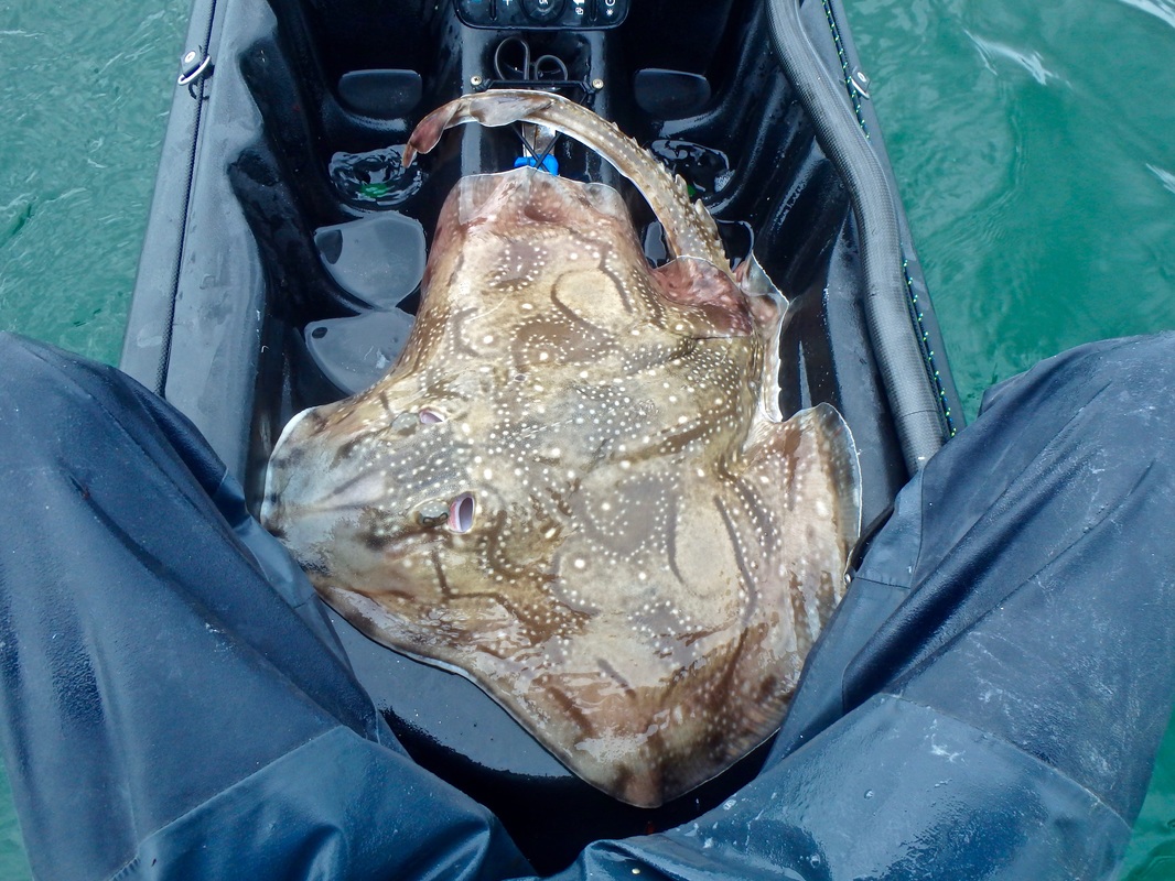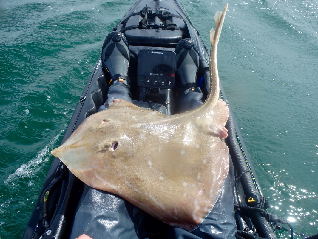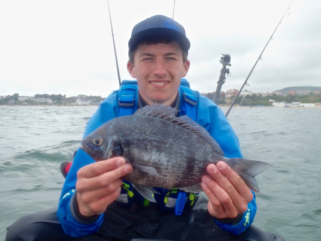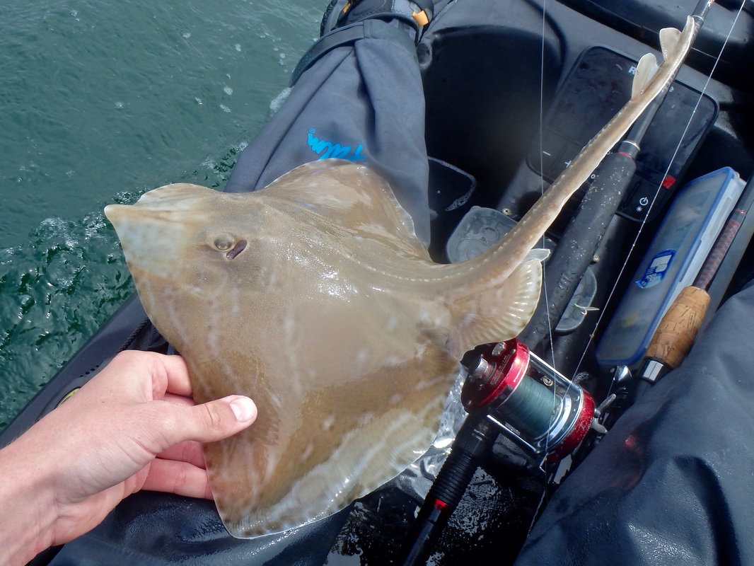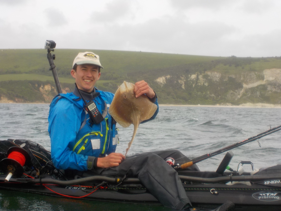 ThursdayI arrived at Herston Leisure campsite for 9 and set up the tent in no time. Ben and a few others were already down at the car park gearing up for a day on the water so it wasn't long before i was heading down to join them. It was a warm day albeit a tad breezy but i couldn't wait to get on the water. I wasn't too sure what to target but there are plenty of species here so it would be a day of fishing for all sorts. A quick trip to the tackle shop and it was time to hit the water on the Tempo... We headed across the bay to a reef mark to see if we could find some Black Bream. A few tiny ones later and a slightly better male took the ragworm bait. They are quite stunning with the iridescent blue markings and jet black colour. Black bream are not a species that can be easily targeted close to shore from the kayak in Cornwall. I know marks that produce them but a fair amount of time and effort (and luck!) would be needed to have a productive session, so its nice to be able to catch a few reasonably easily at Swanage! They give a cracking fight on light gear. I was using the Ugly Stik Elite Spin which worked well for them. A few small wrasse showed themselves and then we headed further out to see if there were any rays on the feed. I was quietly hoping to catch an Undulate Ray as they are near impossible to catch back home. A Spotted Ray would also be welcome as i'm yet to catch one. Both species are often caught at Swanage so i would be putting a few hours in over the next few days trying to catch them. The clean ground can also produce Smoothhounds so whilst one rod cast a sandeel bait out, the other rod put down a peeler crab in the hope of a Smoothie. Violent bites almost straight away and a failed hook up...damn! Bait back out and 10 minutes later a fish tears off with the bait. The rod hoops over and a decent scrap gets underway. Soon enough i'm looking at a Starry Smoothound around the 5lb mark. I've only ever caught one small one before so its a new PB for me! A few dogfish later and it was apparent the rays didn't want to show themselves. We up-anchored and moved back onto the reefs to find some mini species. Sabikis tipped with ragworm found a few of the Wrasse species, Pouting, Pollack. I wanted to catch a male Baillons Wrasse but despite Ben catching a few less than 30 yards away i couldn't find one! Steve managed to snap an interesting photo of me paddling. Time to paddle in and get back to the campsite for some beers and fishing talk. An enjoyable first day on the water. FridayUp at 6am, a quick bowl of coffee (i forgot a cup!) and it was time to go kayak fishing again. The wind was increasing and the forecast for tomorrows competition was looking ever unpromising. Ah well, that wont stop us! We headed straight out to look for the Rays. Anchors down and we got comfortable in the choppy mess. A while passed without much action and then Ben started to catch Spotted Rays one after the other. He had 4 and then i decided to move as i was obviously in a dead spot! First cast after re-anchoring and a fish finds the sandeel. I bend into something that wasn't a dogfish and smallish ray soon appeared beneath the kayak....is it a Spotted....nope. Its a small Small Eyed! Thats better. It wasn't too much longer and the Sandeel i had cast out on my Ugly Stik Elite Spin 20-50g was being munched by something. I hooked into it and the rod lurched over.....Ray!! This was going to be fun on the light rod. It took a while but i eventually got the better of it and was surprised how well the rod coped with a decent weight on the end of it. It felt like a bigger fish so perhaps it was an Undulate.....nope...it was another Small Eyed and a decent one! It went around 9lb on the scales and was soon swimming back down to the depths after some quick photos. That was me happy! The small eye of a Small Eyed Ray..... The bites dried up and despite me wanting to catch a Spotted, and Ben wanting to catch a Small Eyed, the fish got the baits the wrong way around! A Spider Crab took one bait and the tide started running against the wind causing more problems than it was worth, so it was time for a move. We headed back in close over the rough stuff and picked up a few of the usual suspects including this pretty little squid muncher..... Back to shore to have an evening of getting tackle and rigs ready for the competition. Saturday - Competition DayThe sound of rain hitting the tent is not pleasant, nor motivating, at 6am in the morning. Registration for the Swanage Classic started at 7 so it was time to get a move on and get down to the car park and prepare for what was looking to be a very wet and windy day on the water. The wind was gusting up to 30mph and intermittent rain was forecast. Luckily Swanage is fairly sheltered but conditions would still be uncomfortable to fish in. Before long the place was full of kayak anglers setting up their kayaks. A quick trip to Swanage Angling Centre, a short walk from the registration point, to pick up my pre-ordered bait. Ragworm, Sandeels, Peelers, Mackerel and Squid should cover all the bases, but did i order enough? Lets buy some more just incase, even though i know it wont get used...those tackle shops are good at catching anglers! It was great too see so many fishing kayaks all rigged up. Before long it was time for the safety briefing where the organiser David Morris made important safety announcements and ran through the rules. With the weather looking to deteriorate, the fishable area would be reduced. This would mean the fishing would be practically limited to the rough ground, so the clean ground species would be difficult to catch. Never mind, there are still plenty of species to expect over the reefs and rough ground. Safety brief over and everyone made their way onto the water. Once everyone was afloat the countdown began....5, 4, 3, 2, 1 and GO! Everyone paddled out hard to the marks and set anchor. With the fishable area restricted it was quite cramp