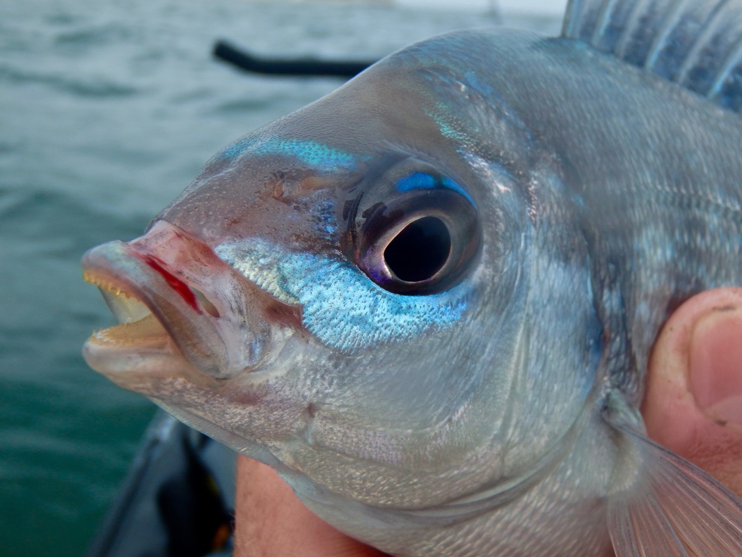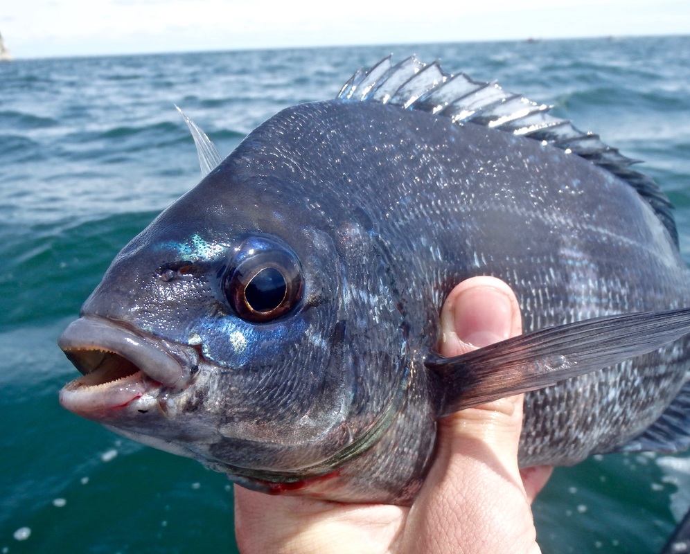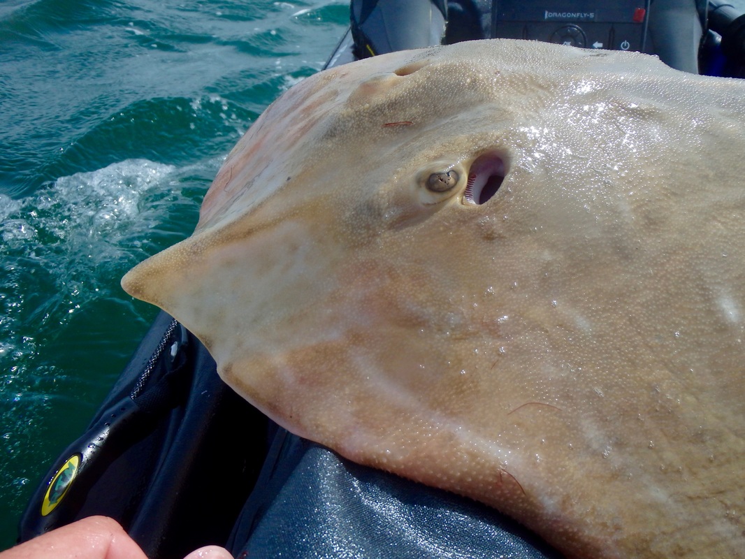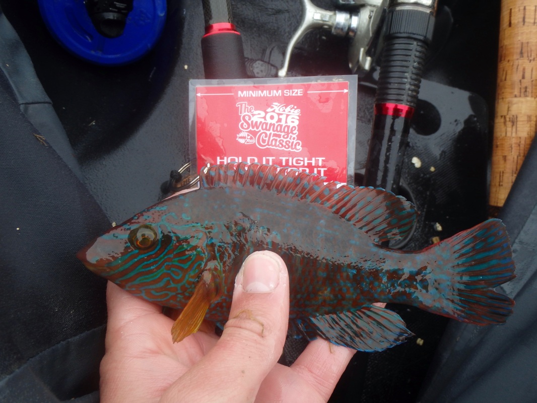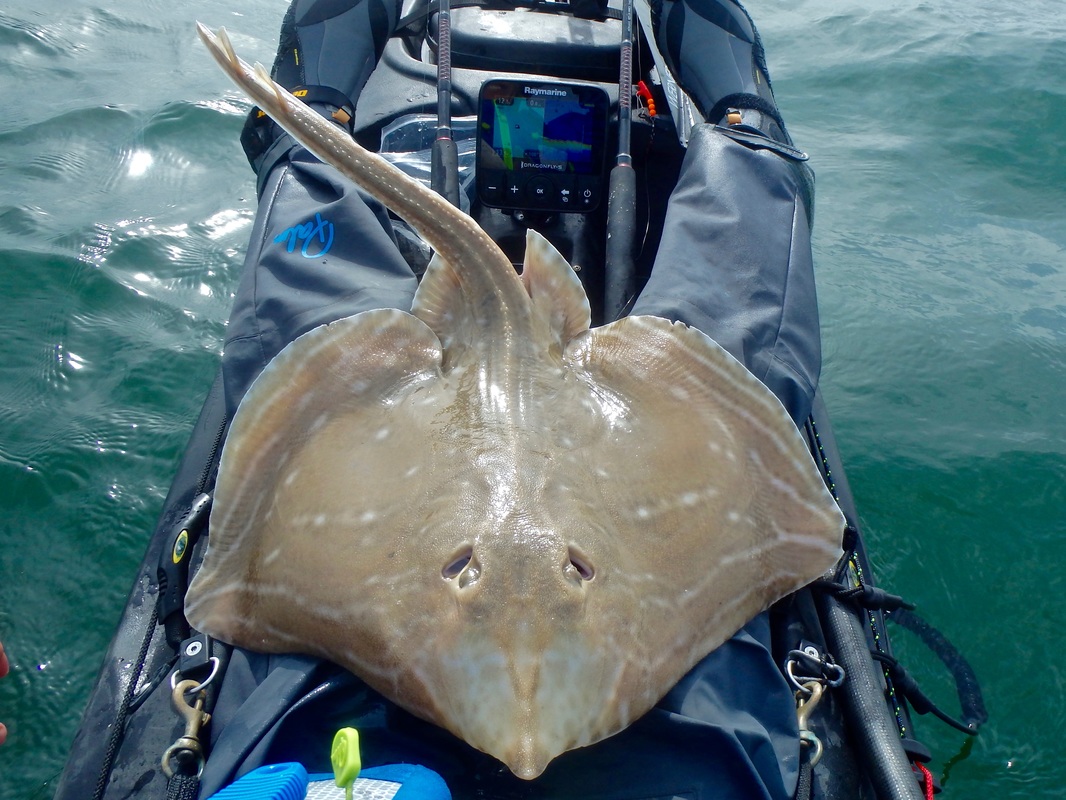 ThursdayI arrived at Herston Leisure campsite for 9 and set up the tent in no time. Ben and a few others were already down at the car park gearing up for a day on the water so it wasn't long before i was heading down to join them. It was a warm day albeit a tad breezy but i couldn't wait to get on the water. I wasn't too sure what to target but there are plenty of species here so it would be a day of fishing for all sorts. A quick trip to the tackle shop and it was time to hit the water on the Tempo... We headed across the bay to a reef mark to see if we could find some Black Bream. A few tiny ones later and a slightly better male took the ragworm bait. They are quite stunning with the iridescent blue markings and jet black colour. Black bream are not a species that can be easily targeted close to shore from the kayak in Cornwall. I know marks that produce them but a fair amount of time and effort (and luck!) would be needed to have a productive session, so its nice to be able to catch a few reasonably easily at Swanage! They give a cracking fight on light gear. I was using the Ugly Stik Elite Spin which worked well for them. A few small wrasse showed themselves and then we headed further out to see if there were any rays on the feed. I was quietly hoping to catch an Undulate Ray as they are near impossible to catch back home. A Spotted Ray would also be welcome as i'm yet to catch one. Both species are often caught at Swanage so i would be putting a few hours in over the next few days trying to catch them. The clean ground can also produce Smoothhounds so whilst one rod cast a sandeel bait out, the other rod put down a peeler crab in the hope of a Smoothie. Violent bites almost straight away and a failed hook up...damn! Bait back out and 10 minutes later a fish tears off with the bait. The rod hoops over and a decent scrap gets underway. Soon enough i'm looking at a Starry Smoothound around the 5lb mark. I've only ever caught one small one before so its a new PB for me! A few dogfish later and it was apparent the rays didn't want to show themselves. We up-anchored and moved back onto the reefs to find some mini species. Sabikis tipped with ragworm found a few of the Wrasse species, Pouting, Pollack. I wanted to catch a male Baillons Wrasse but despite Ben catching a few less than 30 yards away i couldn't find one! Steve managed to snap an interesting photo of me paddling. Time to paddle in and get back to the campsite for some beers and fishing talk. An enjoyable first day on the water. FridayUp at 6am, a quick bowl of coffee (i forgot a cup!) and it was time to go kayak fishing again. The wind was increasing and the forecast for tomorrows competition was looking ever unpromising. Ah well, that wont stop us! We headed straight out to look for the Rays. Anchors down and we got comfortable in the choppy mess. A while passed without much action and then Ben started to catch Spotted Rays one after the other. He had 4 and then i decided to move as i was obviously in a dead spot! First cast after re-anchoring and a fish finds the sandeel. I bend into something that wasn't a dogfish and smallish ray soon appeared beneath the kayak....is it a Spotted....nope. Its a small Small Eyed! Thats better. It wasn't too much longer and the Sandeel i had cast out on my Ugly Stik Elite Spin 20-50g was being munched by something. I hooked into it and the rod lurched over.....Ray!! This was going to be fun on the light rod. It took a while but i eventually got the better of it and was surprised how well the rod coped with a decent weight on the end of it. It felt like a bigger fish so perhaps it was an Undulate.....nope...it was another Small Eyed and a decent one! It went around 9lb on the scales and was soon swimming back down to the depths after some quick photos. That was me happy! The small eye of a Small Eyed Ray..... The bites dried up and despite me wanting to catch a Spotted, and Ben wanting to catch a Small Eyed, the fish got the baits the wrong way around! A Spider Crab took one bait and the tide started running against the wind causing more problems than it was worth, so it was time for a move. We headed back in close over the rough stuff and picked up a few of the usual suspects including this pretty little squid muncher..... Back to shore to have an evening of getting tackle and rigs ready for the competition. Saturday - Competition DayThe sound of rain hitting the tent is not pleasant, nor motivating, at 6am in the morning. Registration for the Swanage Classic started at 7 so it was time to get a move on and get down to the car park and prepare for what was looking to be a very wet and windy day on the water. The wind was gusting up to 30mph and intermittent rain was forecast. Luckily Swanage is fairly sheltered but conditions would still be uncomfortable to fish in. Before long the place was full of kayak anglers setting up their kayaks. A quick trip to Swanage Angling Centre, a short walk from the registration point, to pick up my pre-ordered bait. Ragworm, Sandeels, Peelers, Mackerel and Squid should cover all the bases, but did i order enough? Lets buy some more just incase, even though i know it wont get used...those tackle shops are good at catching anglers! It was great too see so many fishing kayaks all rigged up. Before long it was time for the safety briefing where the organiser David Morris made important safety announcements and ran through the rules. With the weather looking to deteriorate, the fishable area would be reduced. This would mean the fishing would be practically limited to the rough ground, so the clean ground species would be difficult to catch. Never mind, there are still plenty of species to expect over the reefs and rough ground. Safety brief over and everyone made their way onto the water. Once everyone was afloat the countdown began....5, 4, 3, 2, 1 and GO! Everyone paddled out hard to the marks and set anchor. With the fishable area restricted it was quite cramp