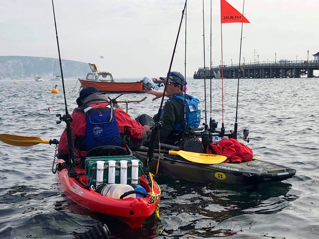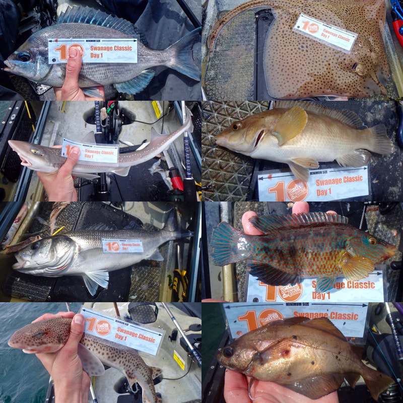 I headed to Swanage early Friday morning and quickly set up my tent at Herston Leisure, the designated campsite for the event, before heading to the waterfront to set up the kayak. Launching late morning, the wind was brisk but dropping. I had one target on my mind.... Rays! A big Small Eyed RayI launched my Hobie Outback and headed out into the bay to a mark that has produced for me previously. There was a fair swell lingering from the strong easterlies that has persisted in the week prior. I found a clean patch of ground in 40ft and dropped anchor. Running ledgers with strong 2/0 hooks were baited with Mackerel and Squid and sent to the bottom. A good hour passed before any positive sign of life showed. A good tug on the rod tip indicated a fish had found the bait. I was fishing with fairly light Quantum Blu Spin 10-50g rods so was in for a battle if a ray had found the bait. Another good pull and I struck into a fish that shot off down-tide. The rod was nodding away as the ray shuffled around resisting my attempts of coaxing it back to the kayak. It felt a better fish. It gave me the run around and fellow Cornish kayaker Oban had just arrived in time to see the fish surface. It was a Small Eyed and a decent one at that. I swiftly pulled it alongside the kayak and lifted it into the foot well. A quick weigh put the fish at 11lb 8oz, a new kayak PB for me! Baits back out and it wasn’t long before I had another solid bite. I gave it some line, which it soon picked up and was continuing to run with the bait. I pulled into a fair weight that gave a slow bottom hugging fight. My fingers were crossed for an Undulate and as the fish came into sight I could soon see the dark brown topside of my target. Again it was a fair size and I soon had a beautifully patterned male Undulate in the foot-well, bringing the scales down to 11lb. Result! No sooner had the fish came on the feed they disappeared and big lumps of weed passing through on the tide soon ruined my fun. A small Smoothhound found the bait amongst the weed but it was not easy fishing. I had a few hours on the shallow reefs within the bay, with just one bream and a few small wrasse finding sabiki rigs baited with ragworm. Not a good sign as the smaller species are much sought-after in the competition. Competition Day !It was an early start with registration from 7am and a safety briefing at 9:15am before the competition start at 10am. Cars and vans soon fill the car park above Prince Albert Gardens, where everybody congregates for the event. Hoards of kayaks fill the area as anglers load them up with gear ready for a day on the water. This is not a quick task and I like to take my time to meticulously position all my gear exactly where needed for the competition. Time spent faffing around due to poor organisation is time wasted catching fish! Bait was collected from Swanage Angling Centre, with a selection of Ragworm, Mackerel, Sandeel, Squid and Peeler purchased to give me plenty of options for catching different species. 9:15am sharp and organiser David Morris rounded up the crowd of anglers ready for the safety and rules briefing. The weather was looking fantastic all day with fishing allowed across the whole bay. There was a spanner thrown in the works though. The minimum size had been increased, from 80mm to 145mm and this ruled out many of the mini species that had featured prominently in previous years. I was quietly happy though. Fishing for larger species suits my style of fishing much better. Minimum size cards were issued to all as this is a catch, photo and release competition with cards to be included in the photo of each species caught. There was also a biggest bream competition with each angler allowed to register one bream to the scales during the competition. Safety briefing done and a flotilla of kayaks made its way down to launch. It is quite a sight as over 70 kayaks rigged to the gunwales scramble onto the water. With all on the water the horn sounded at 10am signalling that fishing can begin. We had 5 hours. Everyone races off to their chosen mark and pedalling like mad I led the way out into the bay as I wanted to get to a specific spot before anyone else. I anchored on clean ground and I was going all-out for big fish with running ledgers baited with half a fillet of mackerel on one rod and a whole squid on the other. 15 minutes later and a dogfish found the squid for species number 1. Soon after and the mackerel had attracted a better bite. I hooked into the unmistakable fight of a ray but it didn’t feel too big. I played it steadily as I really didn’t want to lose it and gentle persuasion brought a nice Spotted Ray to the kayak, a reasonable size too at over 4lb. I baited up with a peeler crab on one rod and had my fingers crossed for a Smoothhound. A little while later the target found the bait but it fancied mackerel over the crab! I held out for a chance of a Small Eyed or Undulate but half an hour of nothing but dogfish and I needed to move. I headed for a patch of rough ground in the hope of Bream and Wrasse. It took a while to tempt a bite and eventually I caught a Corkwing Wrasse. Another move and I headed for a deeper patch of hard ground that showed a few fish marks on the sonar. It was now 1pm and with just 2 hours left before the cut off time to register your catch I needed a stroke of luck to even get amongst the placing’s. A float was sent out in the hope of a garfish whilst I slaved away fishing with a two- hook rig baited with ragworm in the hope of a Ballan Wrasse and a Bream. The float remained floating but it was success on the ragworm with a Ballan and then a number of Black Bream, which are always great sport on a light rod. A Lucky Streak!The garfish plan wasn’t working so out went another big mackerel bait on the bottom whilst I picked off more bream. All of a sudden the bottom rod leapt into action and I lifted into what felt like a powerful ray shooting off across the bottom. Th