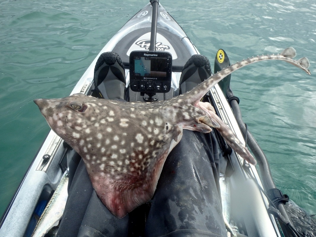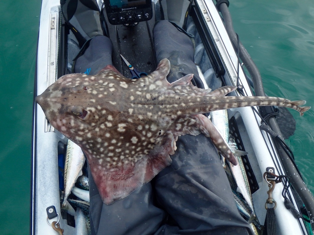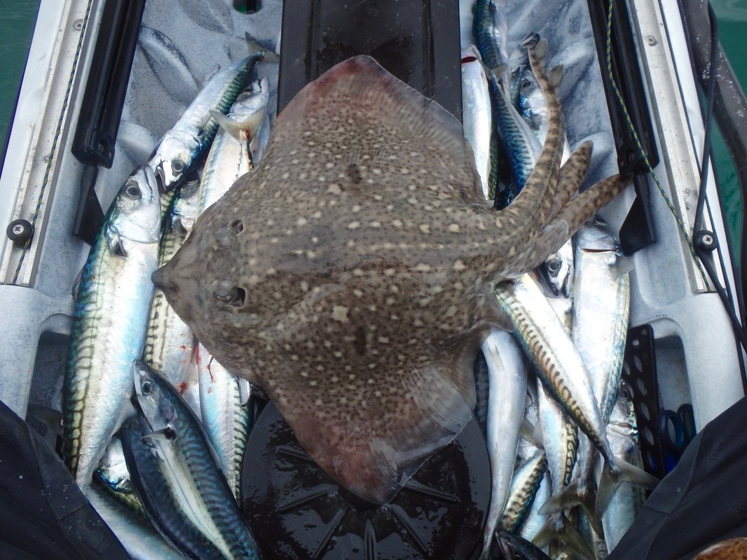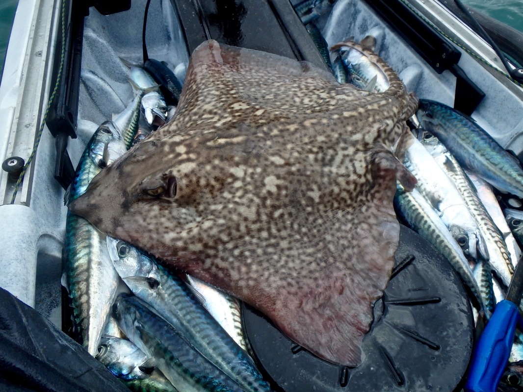 It was a glorious Spring morning. The sunshine had a bit of warmth in it and with very light winds, the water was nice and calm. It was a nice easy paddle out into the river mouth where it was time to start watching the fish finder for signs of mackerel shoals. I had my Ugly Stik Custom Graphite 30-60g Lure rod set up with feathered sabikis ready to drop down to any shoals that showed on the finder. That is the great thing about having a fish finder, you can really pick and choose when is best to drop your rig. It didn't take long before a few shoals started appearing, so down went the sabikis. The rod was soon bending! It was a string full of lively Mackerel.... Excellent! The shoal was still showing so the rig was sent straight back down. Again the fish were straight on the hooks. As the fish arrived at the surface i was happy to see something different on one of the hooks.... a Herring! Superb! That's a good one for the species count this year. The mackerel continued to find the hooks, along with the odd Whiting, but amongst them something different again took a liking to a sabiki.... a Pilchard also known as a Cornish Sardine! Another good one for the species count. There seemed to be plenty of pelagic baitfish around which is always a good sign. I was having to paddle around a bit to find the shoals of fish but when i did they were often thick. One shoal was around 50ft deep in fish and showed up really well on the Downvision mode on the Raymarine Dragonfly... This was really enjoyable fishing with plenty of action. The Mackerel were of good size too with many over the 1lb mark, the bigger ones up around 1lb 6oz. I caught around 50 or so mackerel before it was time to try for something different.... Thornback Ray. These aren't a prolific species in Cornwall especially on open coast grounds where often fish, however they do take residence in some of the river estuaries and can often be caught year-round. I located a patch of sloping ground and dropped down the anchor. I would be using my Ugly Stik 12-20lb Braid rod matched with an Avet SX5.3. A simple running ledger rig with a hook baited with a fresh sliver of Mackerel was sent to the bottom. After half an hour nothing was really happening so set up the lighter lure rod with the same rig and cast that out too. You can guess which rod i had the first bite on! The lure rod was soon buckled over with what felt like a hard fighting ray attached to the end. A good fight and a ray was soon visible below the kayak. A well-marked Thorny was soon on my lap. Not a big one but around 4 or 5lb. A quick snap and he was soon released. The fish must have switched on the feed as it didn't take long for another bite to come along, again on the light rod. Thornback number 2 was soon arching the rod over! A little while later the heavier rod got a bite but whilst waiting to strike the other rod was going off too! I let the fish sit on the light rod bait whilst i dealt with the other rod. It was a typical ray bite... strong bites as the fish munches at the bait, followed by a short run as the fish moves off with the bait. I let the fish settle again and start munching the bait before lifting into it. These weren't big fish but they were giving a good account of themselves, often taking line on short runs. The fish fish was brought aboard and then it was time to sort the next one. Another fun fight on the light rod and i soon had two Thornbacks in the kayak. This was getting to be a really enjoyable session! I love fishing for Rays, and it is nice to catch a few Thornbacks as i don't often fish in areas where they are worth targeting. They are quite pretty fish, and these ones are from fairly clear water so tend to have well defined markings compared to Thornbacks from muddier waters. Particularly interesting are their eyes and the bizarrely shaped flap of tissue laying over them. This piece of tissue is known as the operculum papillare and features many 'finger-like' lobes which function to alter the amount of light reaching the eye, similar to how our own eyes pupils dilate and constrict depending on light conditions. Thornback number 5 was soon followed by Thornback number 6 before i needed to call it a day, both on the light rod again which was brilliant! I was trying some new gear on the water today too. First up was a new cag... the Palm Bora Jacket. This is Palm's top spec touring cag made from XP-3 layer breathable fabric and featuring a roll-away storm hood, velcro adjustable wait with twin-waist system for pairing up with dry trousers/bib, latex wrist cuffs, inner velcro adjustable collar with 1/4 zip outer collar amongst other features. It feels a proper quality piece of kit and will be getting a workout this year as my main cag for kayak fishing. Secondly, i had a new set of sunglasses! I've been after a decent set for sometime. I wanted polarised lenses with UV protection, and a design that floats incase they get dropped overboard. Last week i was made aware of Dewerstone who make wooden frame glasses that are proving popular in the paddling world. A quick look on their website and they had several types which would fit the bill nicely! I opted for the rather snazzy 'Cirros' with a black bamboo frame and red/orange reflective lenses. They are great, and they match the new Palm Bora cag too! For less than £45 squid you can't go wrong 😎 no more squinting in the sun! Enough posing it was time to go home! It had been a brilliant day with practically non-stop action. The target species was caught along with a few more that i don't often catch. Spring is here and the fish are waking up! Bring on the next session!