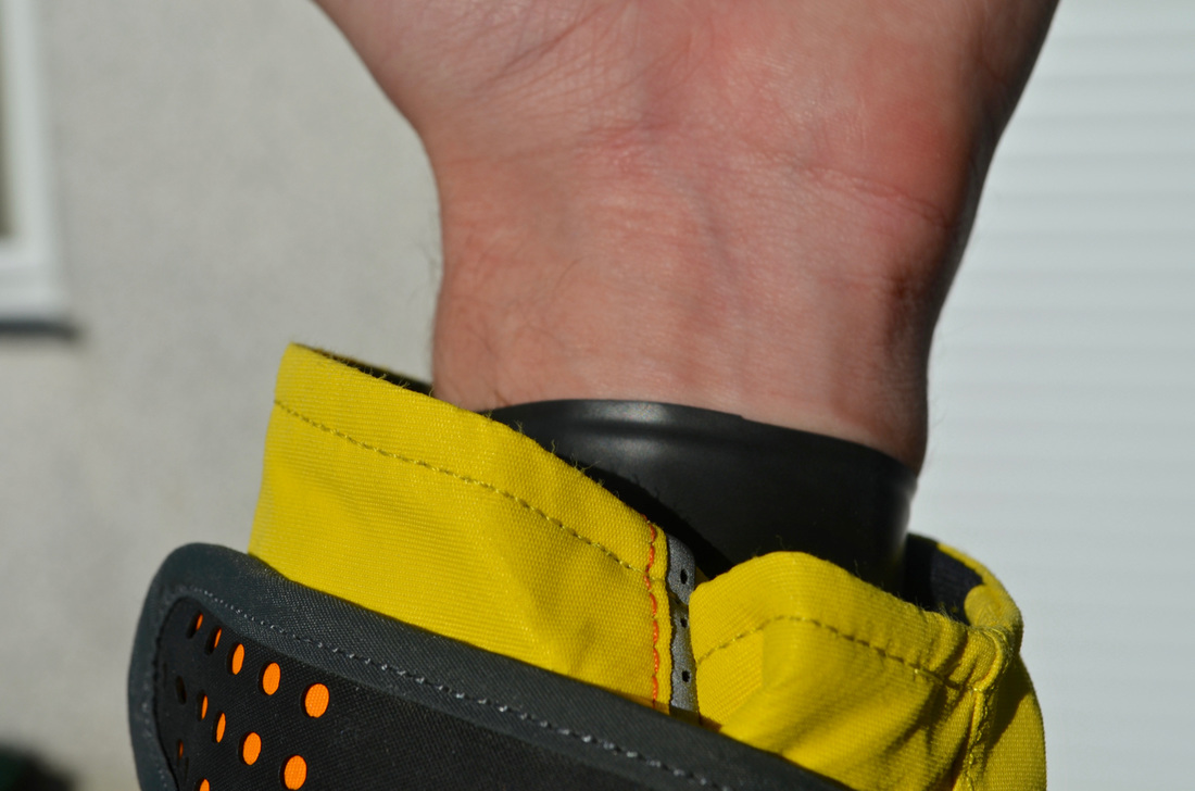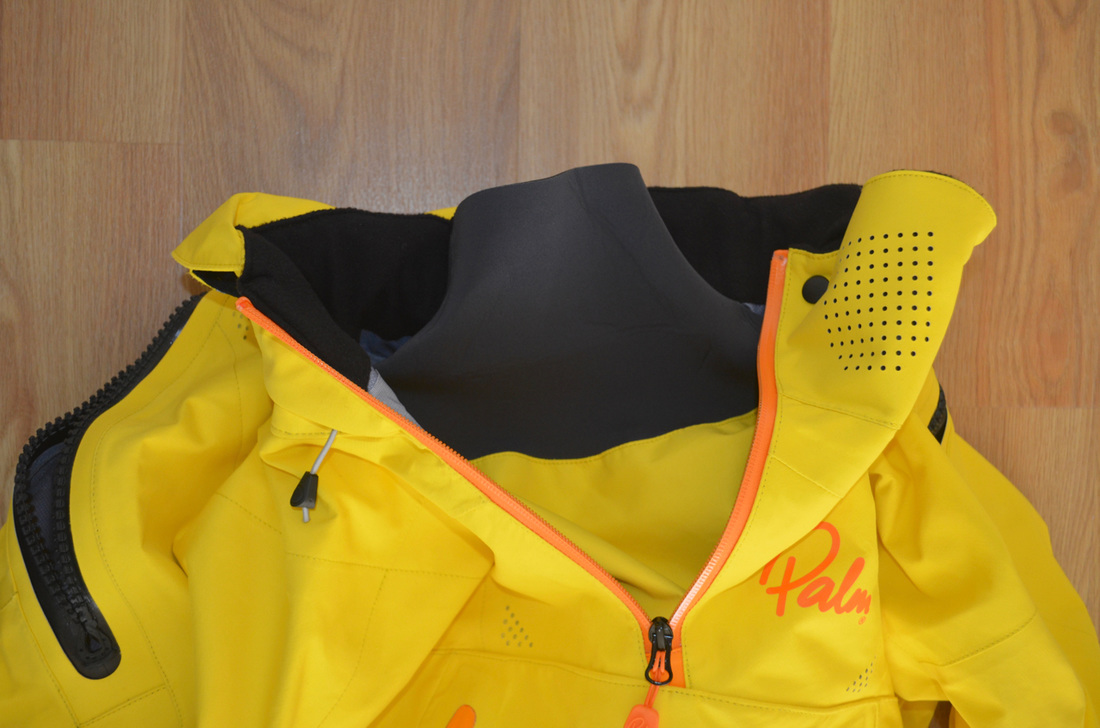 That's the techy bit over.... so what does that all mean? It means that you can paddle and build up a sweat with the suit allowing the moisture (water vapour) given off by your body to pass through the suit to the surrounding air, but at the same time not allowing water back in. You stay dry and you don't become a sweaty mess inside your drysuit! Beware of non-breathable drysuits.....whilst they are cheap and will certainly be better than no dry suit in the colder months, it really is worth getting a decent quality breathable drysuit to start with.....buy cheap, buy twice. So the Bora is made of some clever breathable and durable material. 4-layer 320D reinforced panels can also be found at the usual high wear areas such as the knees, elbows, seat and socks. A quality build that looks to be up to the task of taking on several years of kayak fishing abuse! Lets start with the top half... The neck opening on the storm collar features an offset Aquaseal zip so that you don't have to deal with a zip scratching your lip or chin when the zipper is done up. Laser cut breather holes are located at the front of the storm collar. Opening the zipper reveals the fleece-lining of the storm collar along with the Glideskin neck seal - it's super stretchy and soft which will help with comfort when wearing for long periods of time on the water. In warm weather the storm collar opening can be left open for ventilation and a small button features to pin the open collar back if required. At the rear of the storm collar there is a velcro-close flap which houses the rollaway storm hood. It is pretty easy to open whilst wearing the suit and will come in handy for when the conditions really turn, or when the rain comes. The hood features a stiff peak which helps the hood to stay open and acts as a small sun visor. The hood front can be reduced in size by pulling the front elastic toggles and pressing small push buttons located just inside the hood. This helps the hood to grip your forehead to prevent it blowing down in a strong wind. The hood is helmet compatible for sea kayakers who may need to wear one. The whole hood is volume adjustable by pulling the elastic toggle at the rear of the hood, which is housed under a small flap. This allows you to get a good fit and prevent the feeling of lots of airy space inside the hood. Laser cut breather holes can also be found underneath another flap on the hood. The top features front fleece-lined pockets with Aquaseal zippers. The sleeves are cut to provide the best fit when the arms are bent in the paddling position. The sleeves also feature reflective piping and details and velcro adjustable cuffs. Latex seals features at the wrist to provide a waterproof seal. These are stitched and glued into the suit. The cuff section that would be exposed against your hand whilst paddling is lined in a silky feel material which will help cut down on chaffing. A neoprene waist band can be found on the cag section, this is great for getting a nice snug fit against the body. For the sea kayakers the cag section has a large overlap to where it meets the trouser section underneath - this allows a spraydeck to sit underneath the cag section. Again quality finishing on the dry suit construction. Fabric seams are stitched, glued and taped for a strong and waterproof construction. Hang on.... how do you get into this thing? The Bora is a rear entry drysuit with a Flexible TiZip MasterSeal Zipper at the shoulder. This is a low maintenance zip constructed from a flexible plastic. This has a completely different feel to the rigid brass BDM shoulder zips found on several other drysuits. In fact, you hardly notice its there. The suit is supplied with some TiZip Lube to keep the zip in good condition. A drop after every trip or two will keep it running smoothly. It is fairly easy to zip up and unzip whilst wearing the suit once you have the knack of it. The zip runs much more effortlessly than a brass zip, which are a nightmare to undo yourself! Inside the suit we find an inner neoprene waist band. This waist band helps to keep the trouser section up and prevents sagging of the whole suit when standing up. It works really well and does away with the need for any braces. This takes us onto the main trouser section. We find a relief zip with Flexible TiZip MasterSeal - handy for when natures calls! This is also a handy feature for venting the suit - by this i mean expelling of excess air within the suit before you go paddling. You get rid of the 'Michelin Man' feel by simply opening the relief zip a couple of inches, crouching down and squeezing the suit in against your body and then closing the zipper back up before standing up. You are now vacuum packed into a better fitting suit! Down to the feet.... we have an adjustable ankle cuff made from reinforced material - this is a high wear area that will be brushing against your footwear and potentially the ground and your kayak on a regular basis. The extra reinforcement here is a nice touch. The Bora has built-in fabric socks XP 4-layer material with Nylon 320D soles. Built-in socks are great. They keep your feet dry and this allows you to wear a pair (or several pairs) of thermal socks beneath these to keep your feet warm. Cold feet are a real session spoiler so keeping them warm is a priority. As with all fabric socks, they are not designed to be worn without protective footwear. If not protected they will soon get holed or wear through. I'll be wearing my Palm Descender Boots over mine. Lets try it on...I'm 6ft 2in and built like a stick but fit comfortably in the Medium size. I'd maybe be a large for best fit height-wise but i really do need the medium to prevent too much excess fabric around the body. My Palm Kaikoura PFD sits well over the top and you can even still access the front pockets on the Bora. Well thats the dry part sorted. The Bora looks to be up to the task of taking on some seriously adverse conditions and plenty of kayak fishi