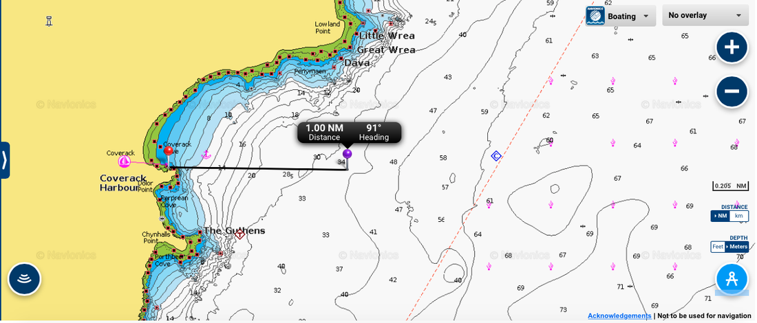 Coverack is a small picturesque fishing village on the eastern side of the Lizard Point. Coverack has an easterly facing sandy beach and a small working harbour. Launching is possible from the beach if the swell is low. The harbour offers safer launching at higher states of tides if a small swell is running but there is a launching fee (around £3.50) for kayaks, to be paid in the honesty box at the top of the harbour slipway before launching. Clean ground can be found within the bay and further offshore, with the occasional patch of rough ground and reef. Rough ground lines the coast towards Lowland Point to the North and Chynalls Point to the South. Strong tides can run past Lowland Point, across the bay, and past Chynalls Point on spring tides. Tidal conditions are more slightly more benign within the bay.