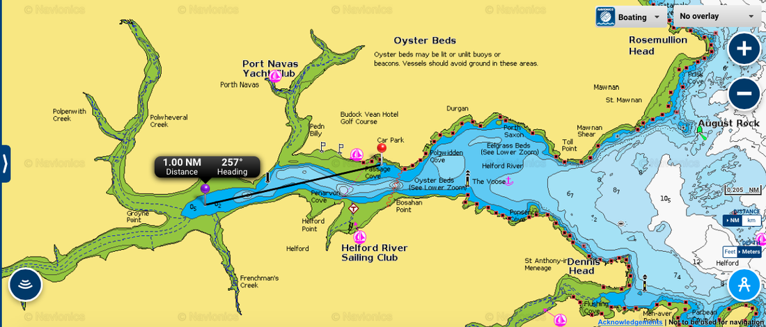 The Helford is a designated Bass nursery and from the 1st May to 31st December, fishing for bass from boats and kayaks, by any method, is an offence and, whilst fishing for other fish from a boat is still permitted, ALL bass caught must be returned to the water. A large seagrass bed is located between Durgan and Toll Point on the North side f the Helford - anchoring is forbidden in this area.
