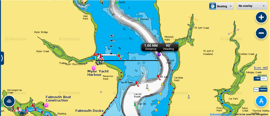 Species: Thornback Ray, Bull Huss, Lesser Spotted Dogfish may show if fishing at anchor with the Carrick Roads. Bass may show to trolled lures. Mackerel and Garfish in season. Wrasse are possible close to the rocks down past Pencarrow Point and around Trefusis. Flounder, Gilthead Bream and Thick Lipped Mullet are possible in Mylor Creek in season.