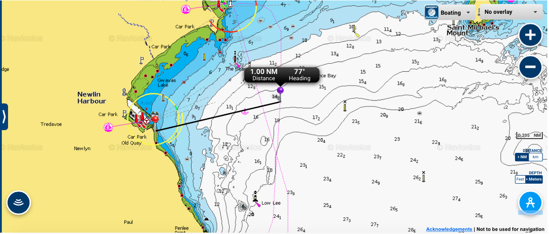 Newlyn is a large fishing port located on the West side of Mounts Bay and is well sheltered. Launching is possible from Sandy Cove on the outside of South Pier. Sandy Cove is a small easterly facing beach that offers easy launching. It is usually sheltered even when launch marks further west are wiped out by the swell. Roug ground and reefs are present along penzance waterfront. Cleaner ground can be found further out into Mounts Bay and off Newlyn North Pier.
