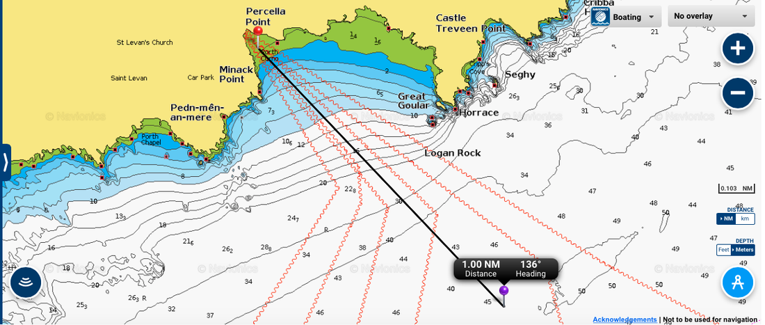 Species: Plaice, Dabs, Turbot, Brill, Greater Weevers, Gurnards (Tubs, Reds and Greys), Whiting and Cod to drift fished baits. Rays may show if anchored. Mackerel and Garfish in season. Pollack and Wrasse can be found around Logan Rock.
