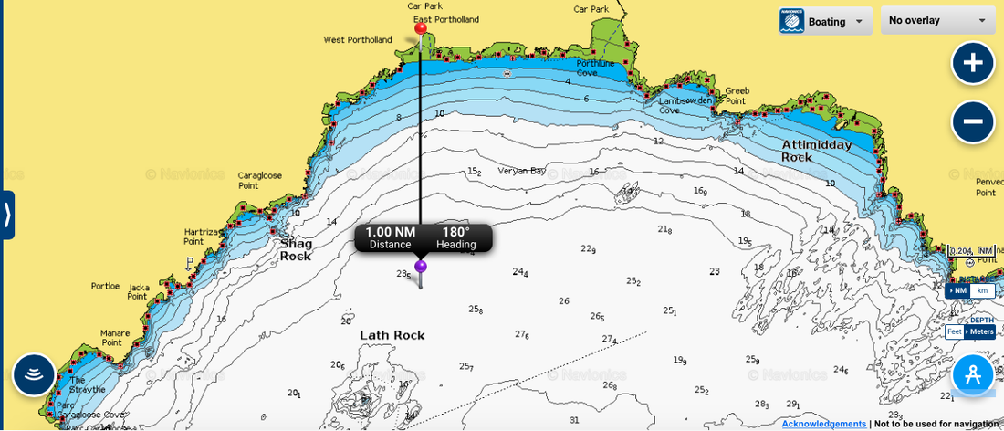 Portholland is a relatively sheltered south facing sandy beach at the bottom of two small valleys, East and West Portholland. Launching is possible in low swell and gives access to Veryan Bay. Clean ground predominates although patches of rocky ground can be found close to the shoreline towards Shag Rock south of Portholland.