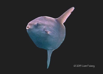 A summer visitor to UK waters and can often been seen swimming at the surface or laying flat on it side waiting for gulls to come and peck off parasites - a fascinating relationship if you ever get the chance to watch this happen - see my marine life photos for a sunfish being 'cleaned' by a gull.