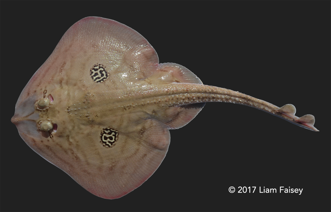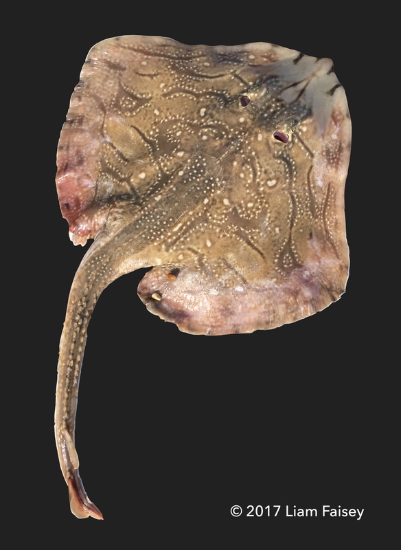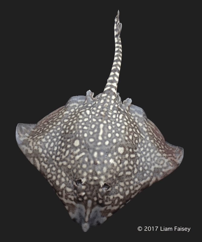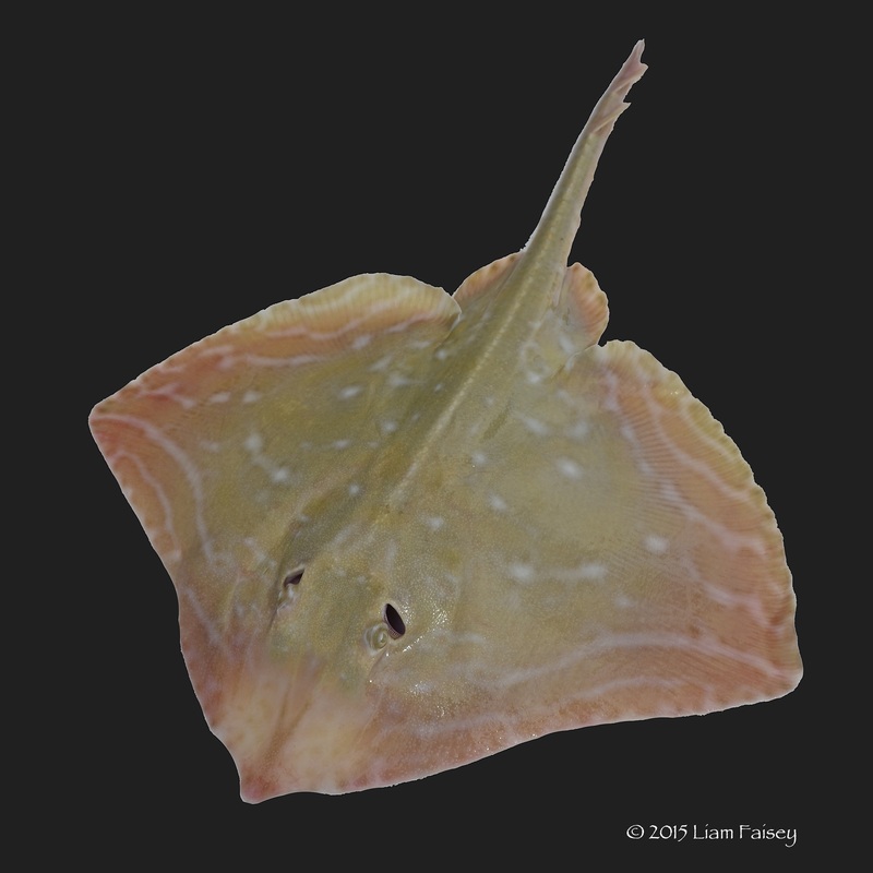 Colouration and patterns can sometimes be drab on Thornback rays in some areas but are often well marked as shown in the photo.