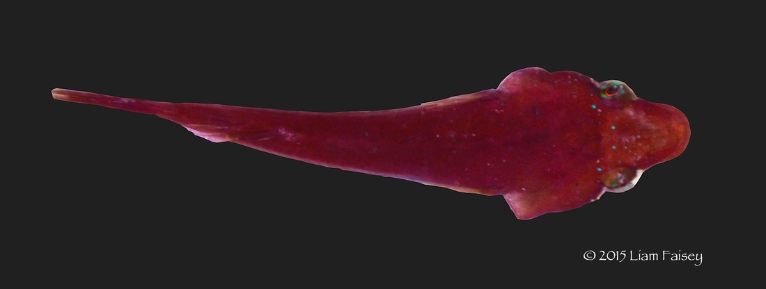 One of the few flatfish species that entirely inhabits rocky habitat. It is also unusual amongst the flatfish as it doesn't seem able to change its coloration as well as many other species - instead it relies on immobility, often in crevices and overhangs, to avoid predation. Several sources report that the Common Topknot does not change its colouration to match its background, however the photos on the left show the same individual photographed 2 days apart. On the first occasion its skin was light in colour and on the second occasion the Topknot was much darker. |